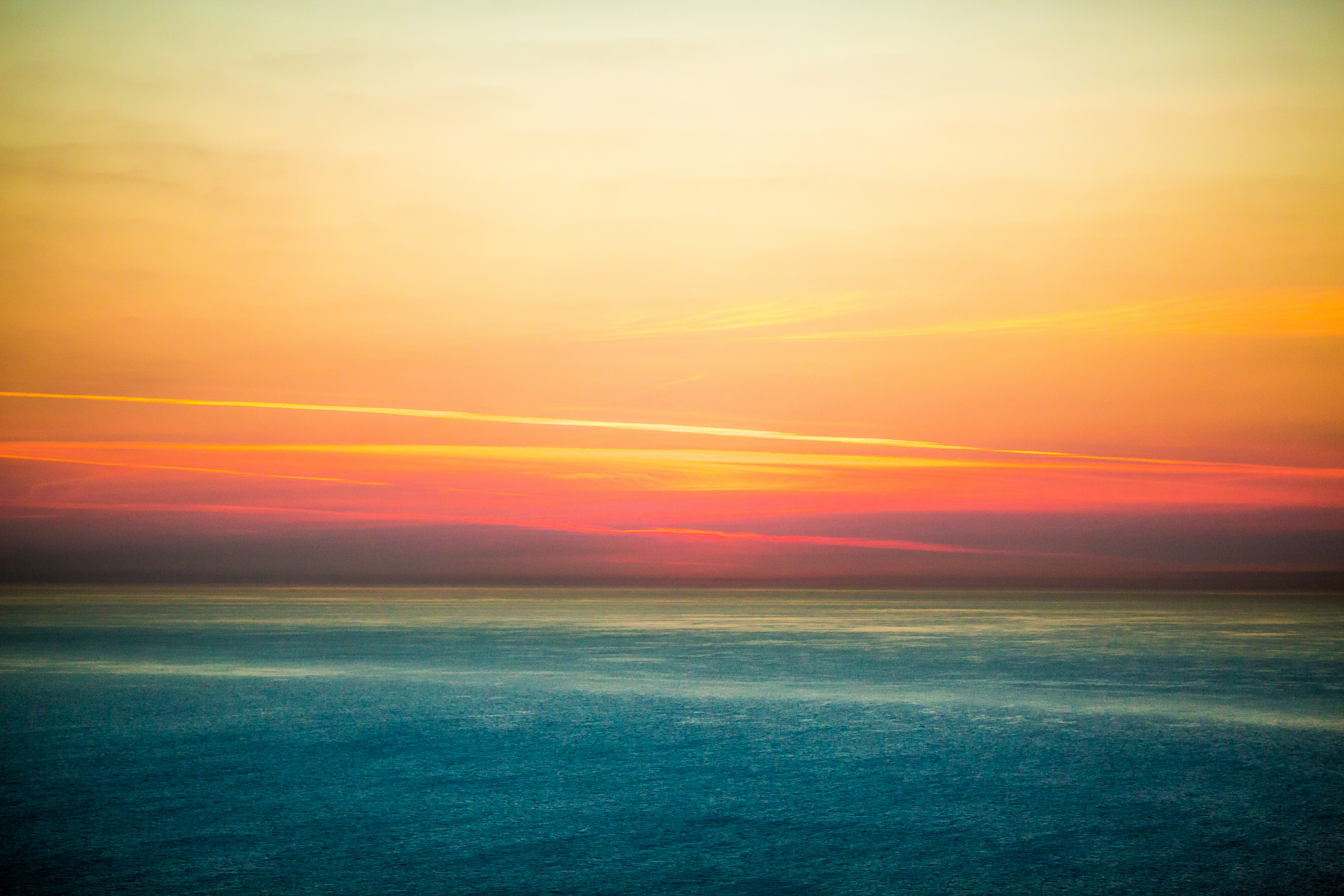 Обои послесвечение, океан, утро, вечер, красный цвет, фото, заставка