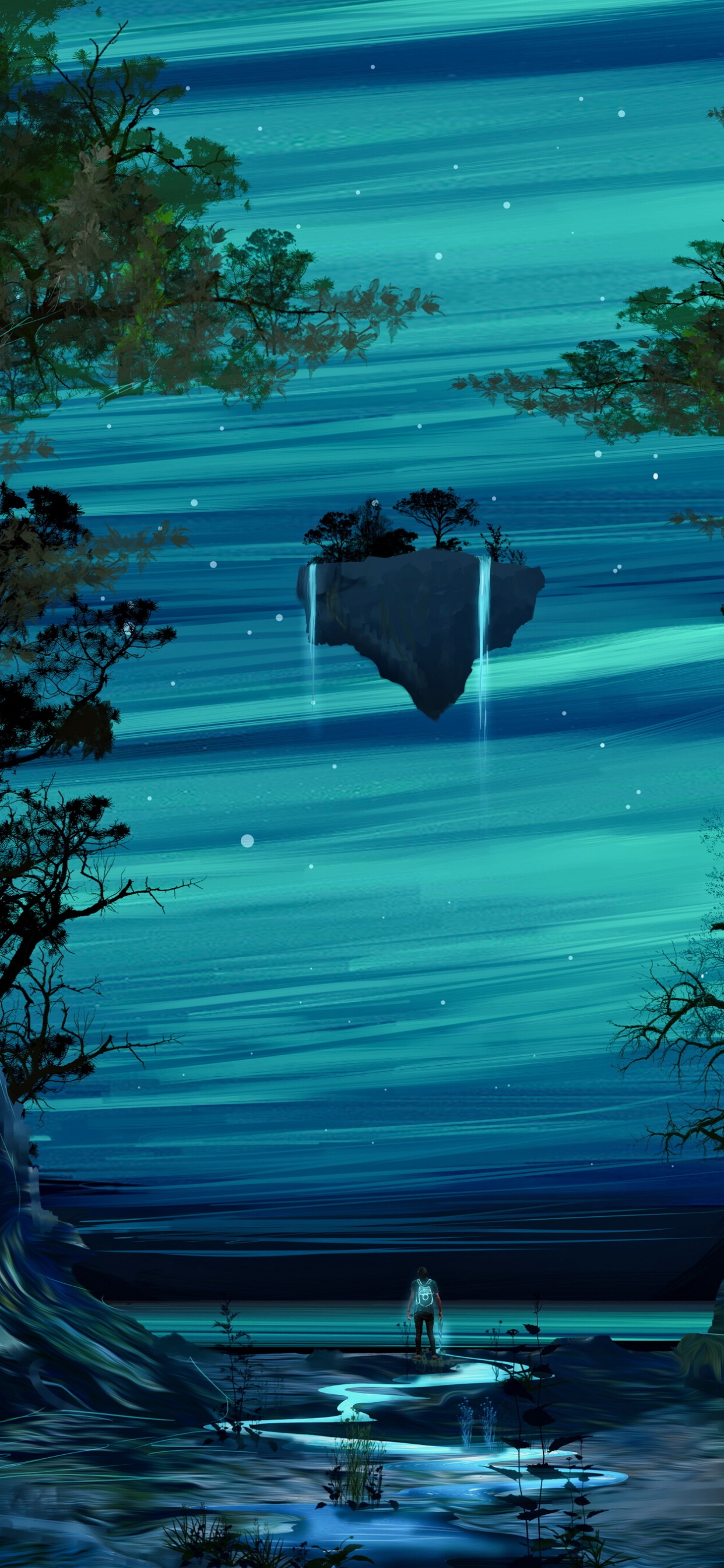 Обои живопись, природа, вода, синий, природный ландшафт для iPhone XS Max, заставка, 1242x2688 картинка