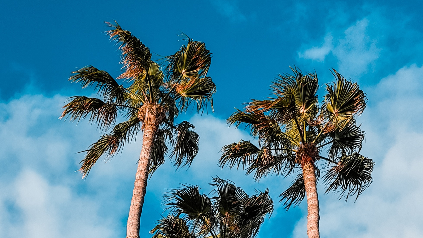 Обои 1366x768 дерево, природа, синий, Пальма, дневное время, HD ready картинка