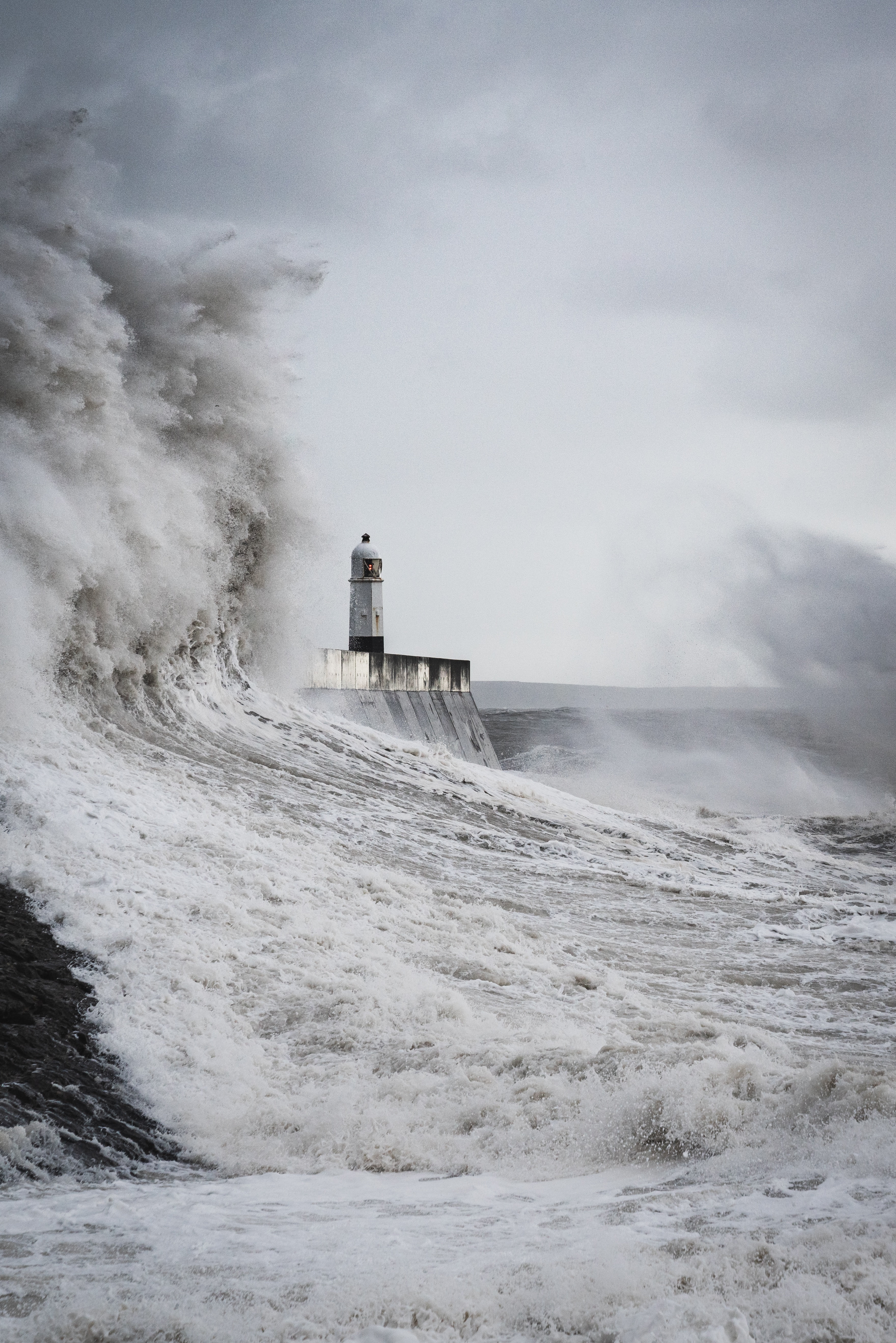 Обои волна, вода, побережье, Сигнальная башня, море, фото, заставка