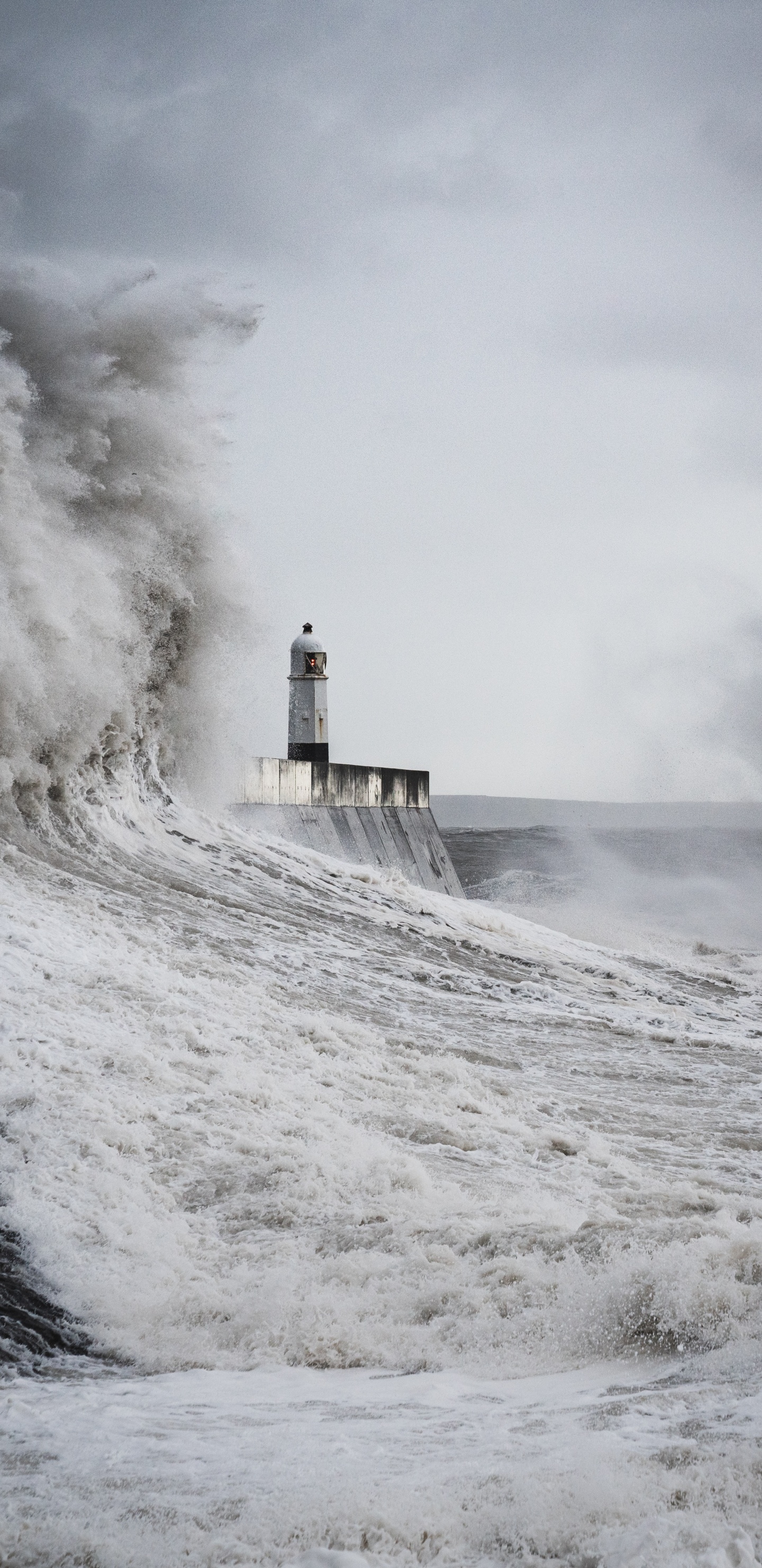 Обои волна, вода, побережье, Сигнальная башня, море для Samsung Galaxy S8/S8+/S9/S9+/Note 8/Note 9 QHD, заставка, 1440x2960 картинка