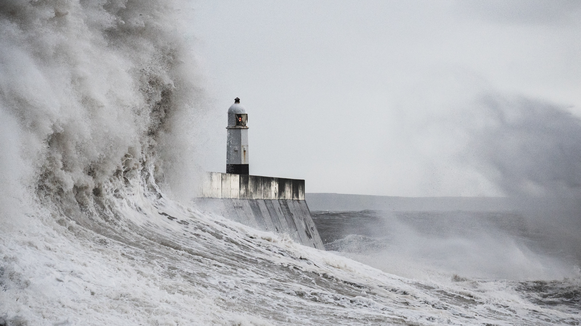 Обои 1920x1080 волна, вода, побережье, Сигнальная башня, море, Full HD, HDTV, 1080p 16:9 картинка
