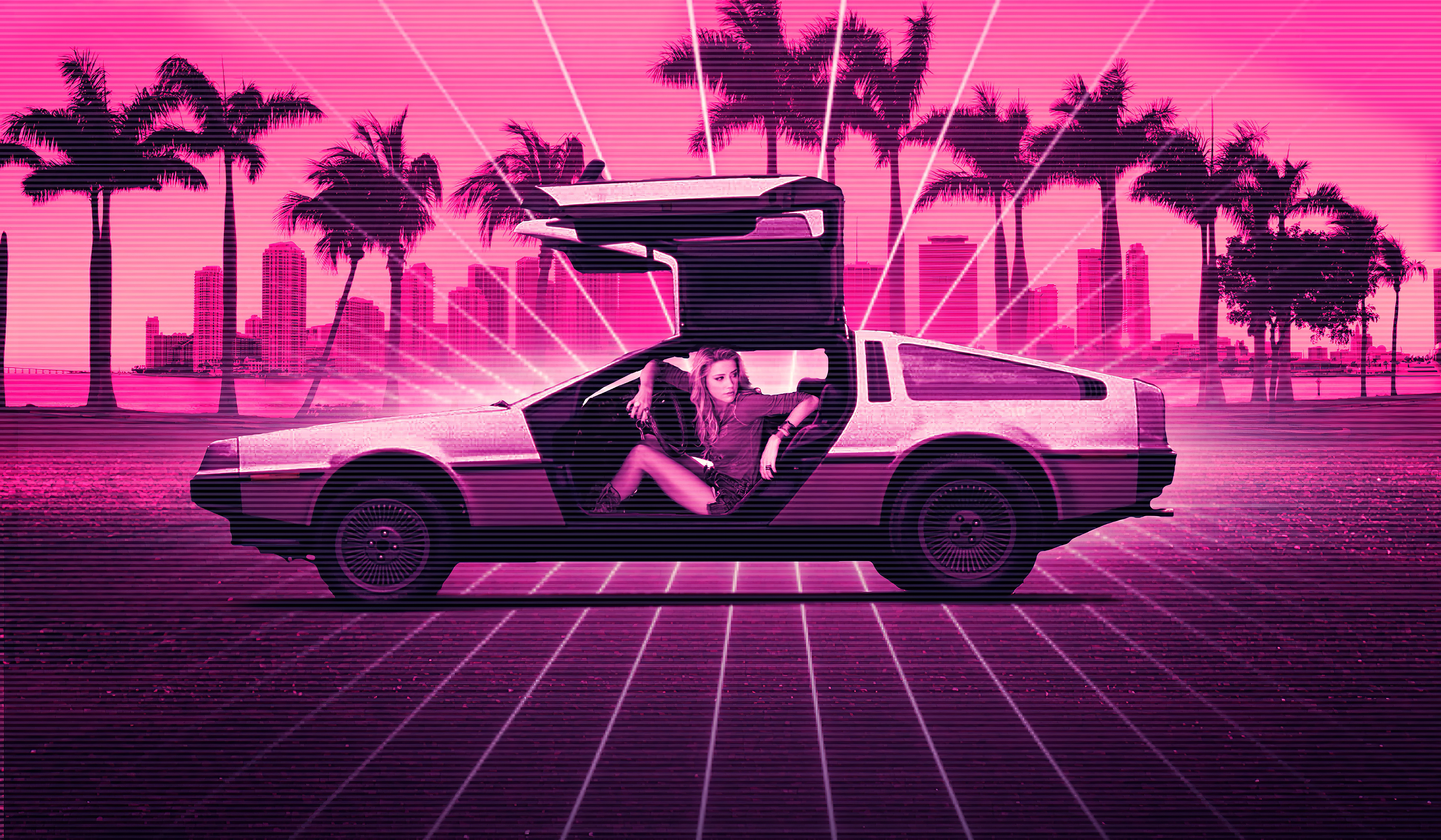 Обои ДМС Делориан, Synthwave, Делориан Мотор Компани, розовый, кузов купе, фото, заставка
