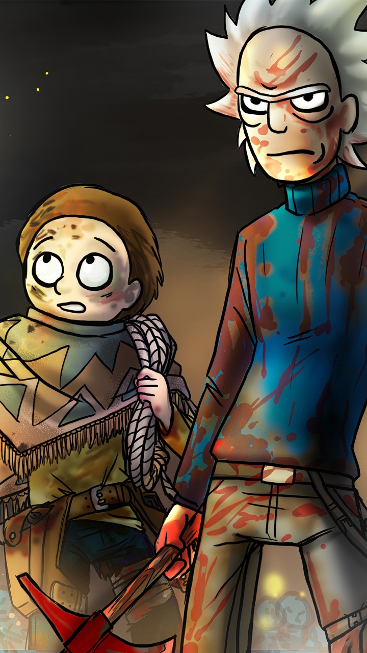 Обои Рик Санчез, Морти Смит, мультсериал, мультфильм, иллюстрация для HD Samsung Galaxy S3/J3/J4/J5, Meizu M5, Sony Xperia L1/L2, заставка, 720x1280 картинка