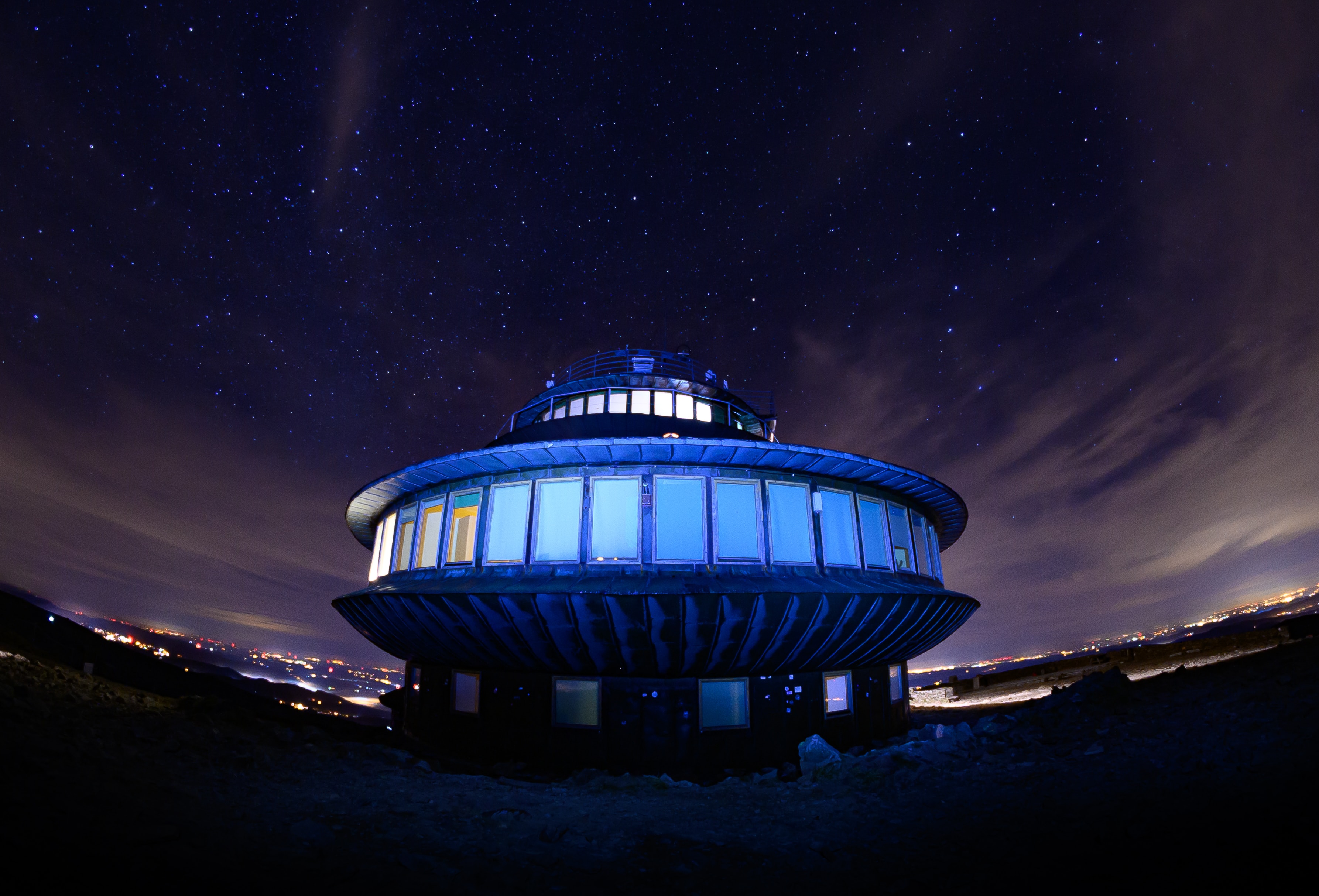 Обои синий, темнота, обсерватория, здание, ночь, фото, заставка