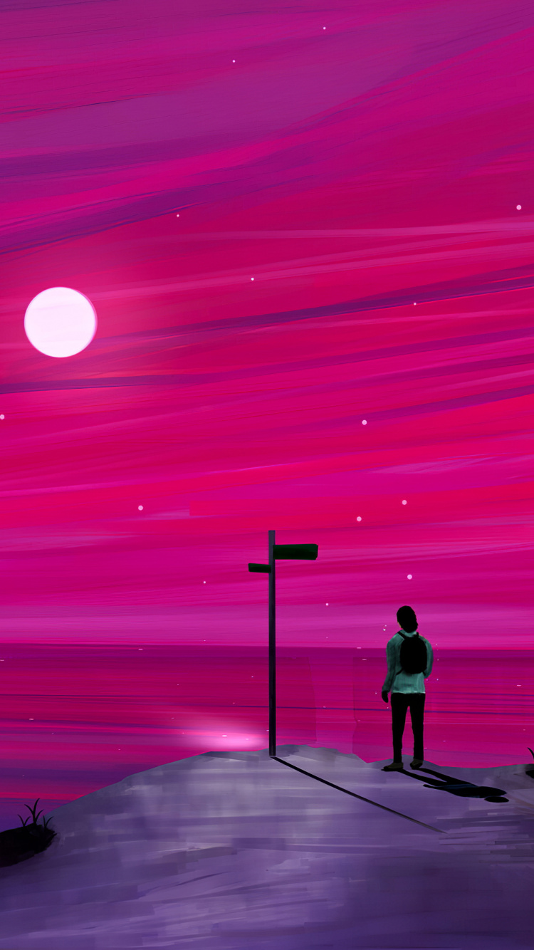 Обои Восход М, свет, розовый, артист, Фиолетовый для iPhone 6, 6S, 7, 8, заставка, 750x1334 картинка