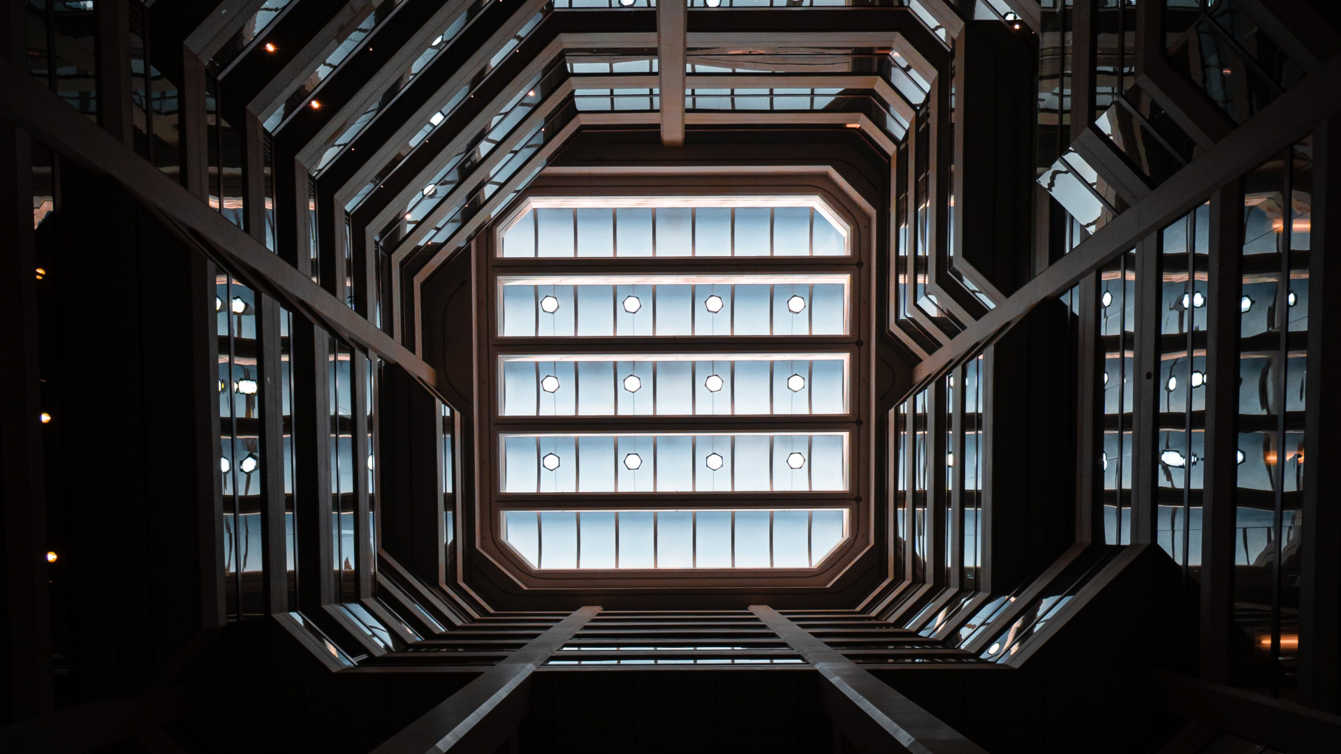 Обои 1920x1080 темнота, ночь, свет, симметрия, лестница, Full HD, HDTV, 1080p 16:9 картинка
