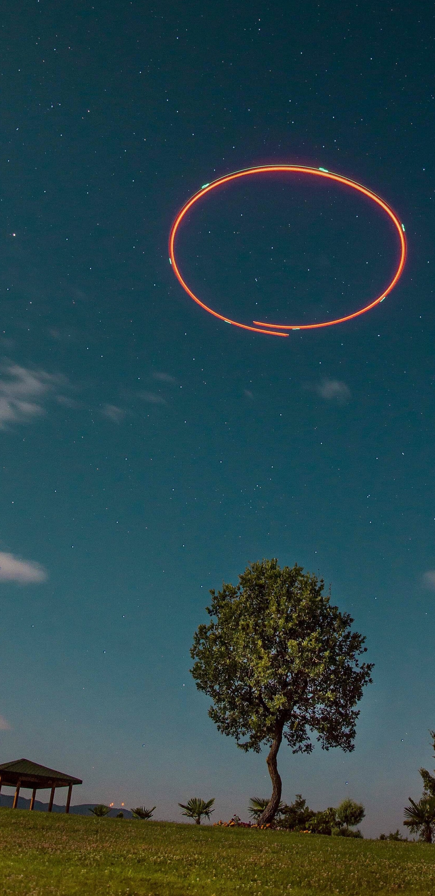 Обои горизонт, Вселенная, apple, неопознанный летающий объект, дерево для Samsung Galaxy S8/S8+/S9/S9+/Note 8/Note 9 QHD, заставка, 1440x2960 картинка