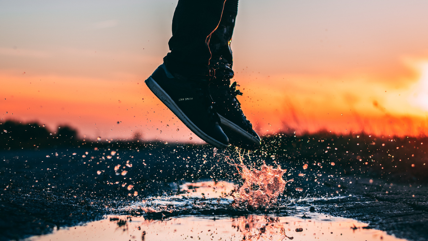 Обои 1366x768 вода, отражение, нога, человеческая нога, обувь, HD ready картинка