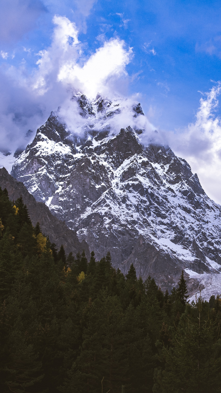 Обои гора, пейзажи гор, горный хребет, дерево, горный рельеф для iPhone 6, 6S, 7, 8, заставка, 750x1334 картинка