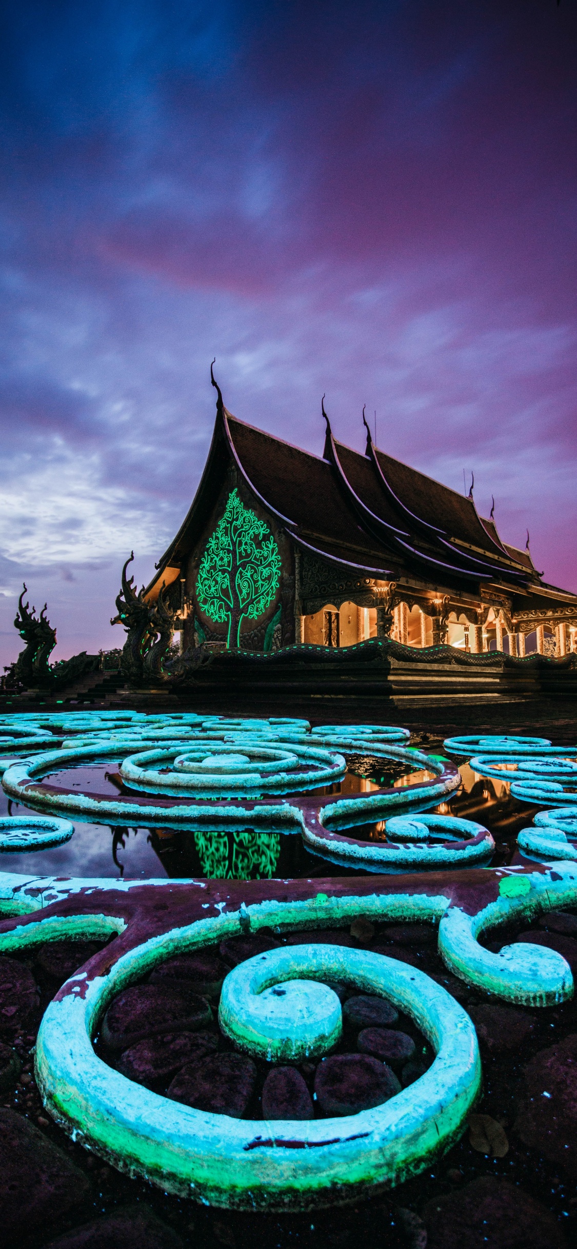 Обои ночь, иллюстрация, отражение, мир, вода для iPhone X / XS, заставка, 1125x2436 картинка