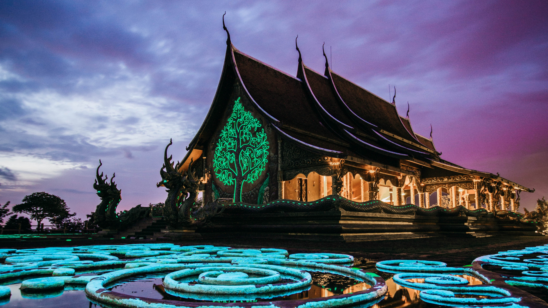 Обои 1920x1080 ночь, иллюстрация, отражение, мир, вода, Full HD, HDTV, 1080p 16:9 картинка