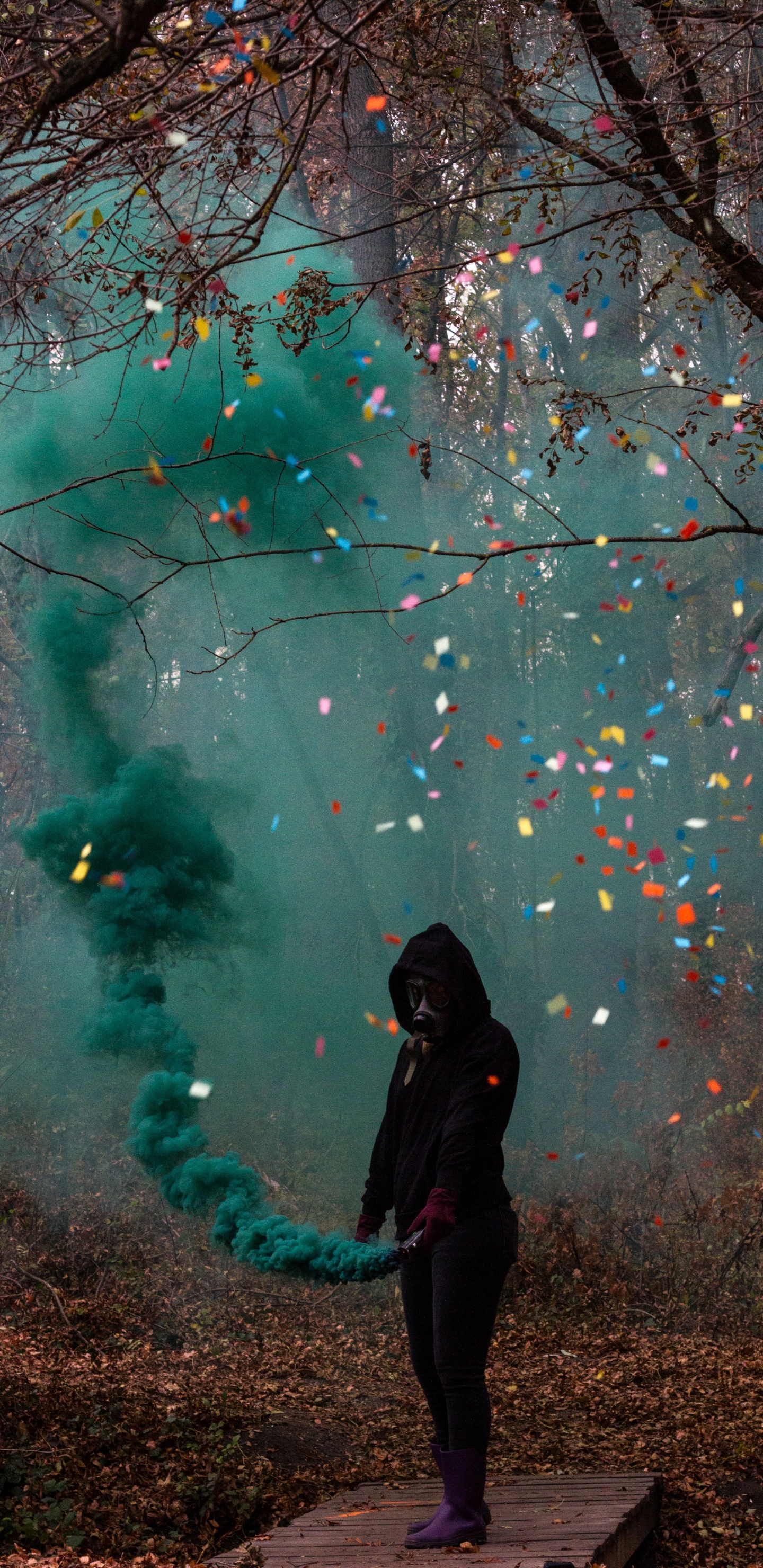 Обои противогаз, зеленый, дерево, свет, ветвь для Samsung Galaxy S8/S8+/S9/S9+/Note 8/Note 9 QHD, заставка, 1440x2960 картинка