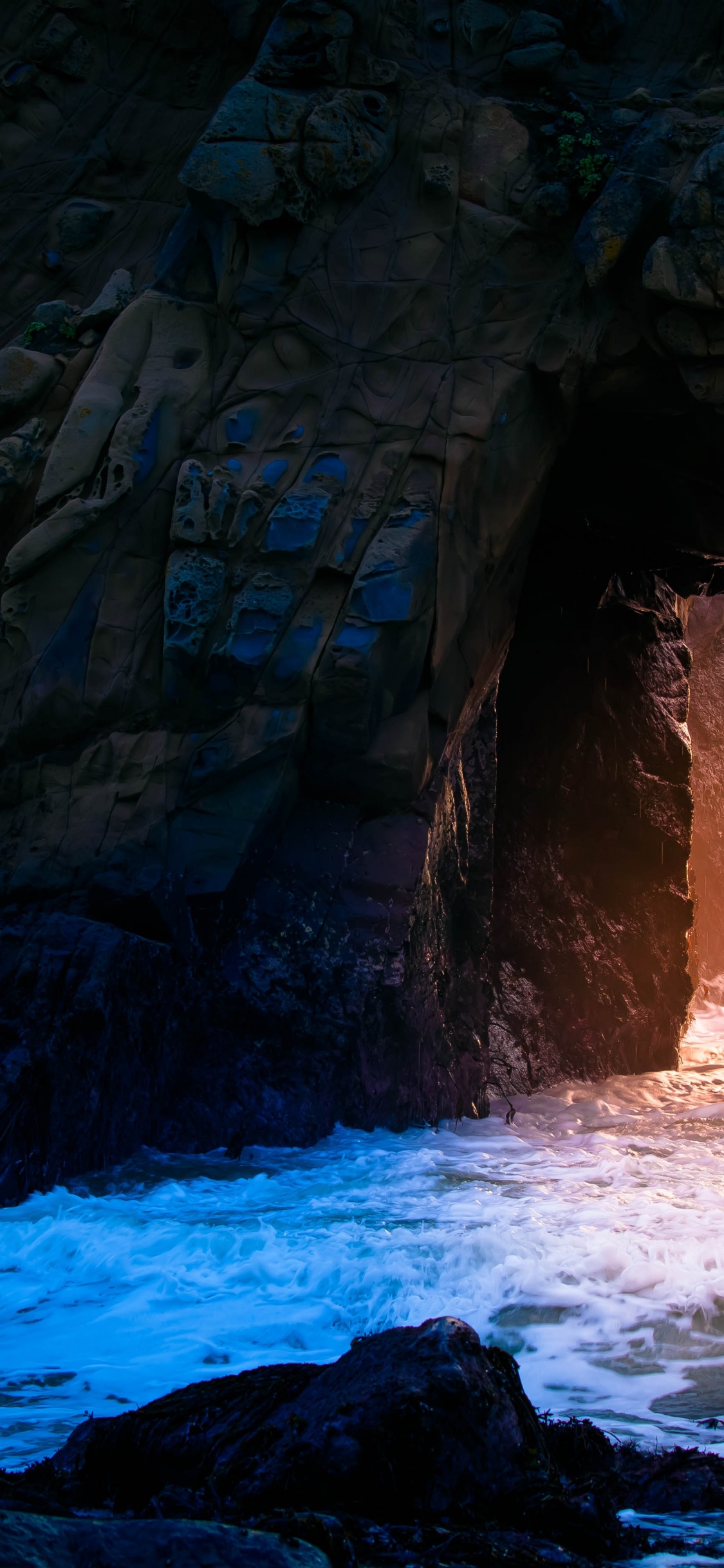 Обои морская пещера, формирование, подземное озеро, вода, темнота для iPhone X / XS, заставка, 1125x2436 картинка