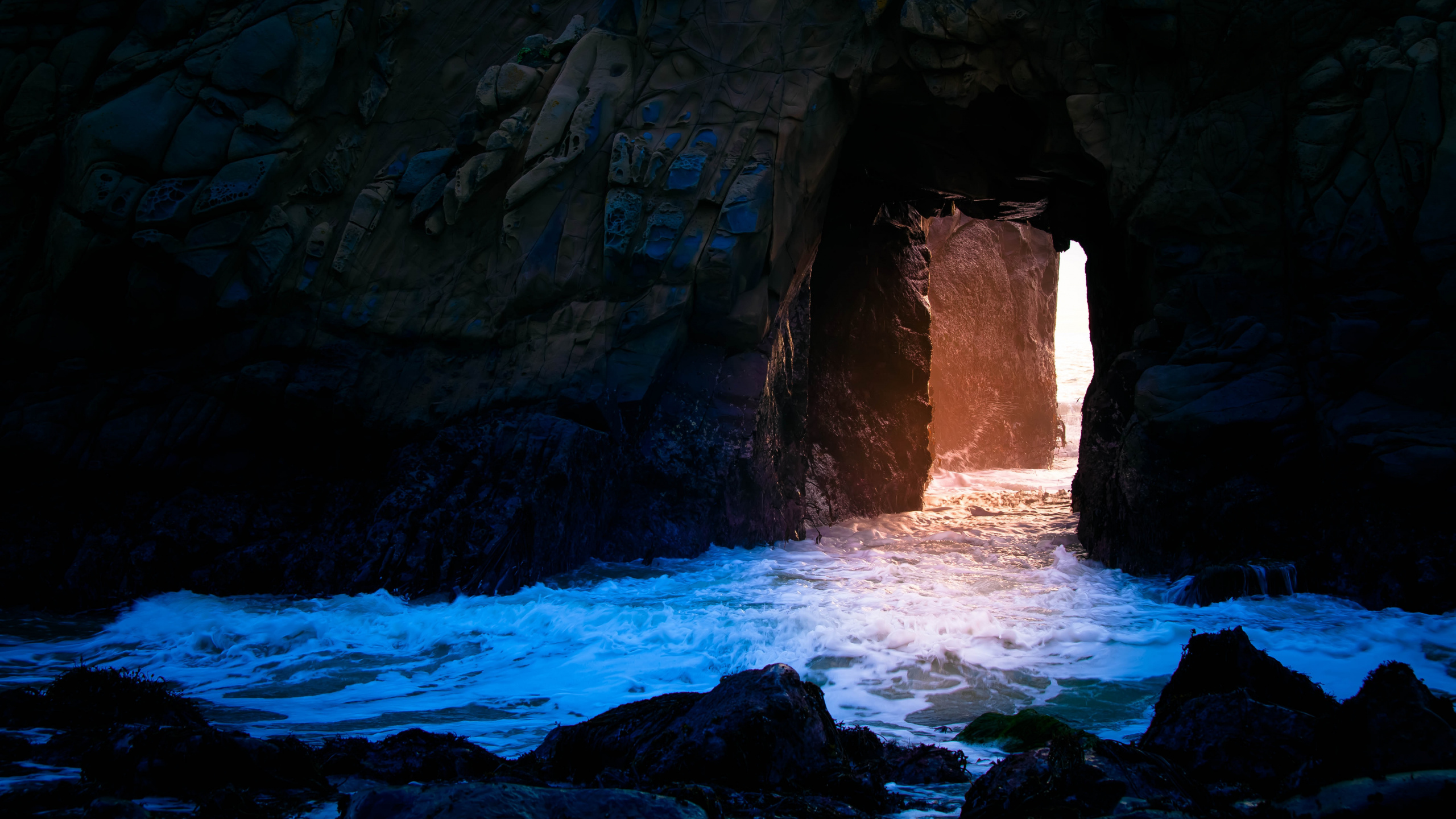 Обои 2560x1440 морская пещера, формирование, подземное озеро, вода, темнота, WQHD, QHD, 16:9 картинка