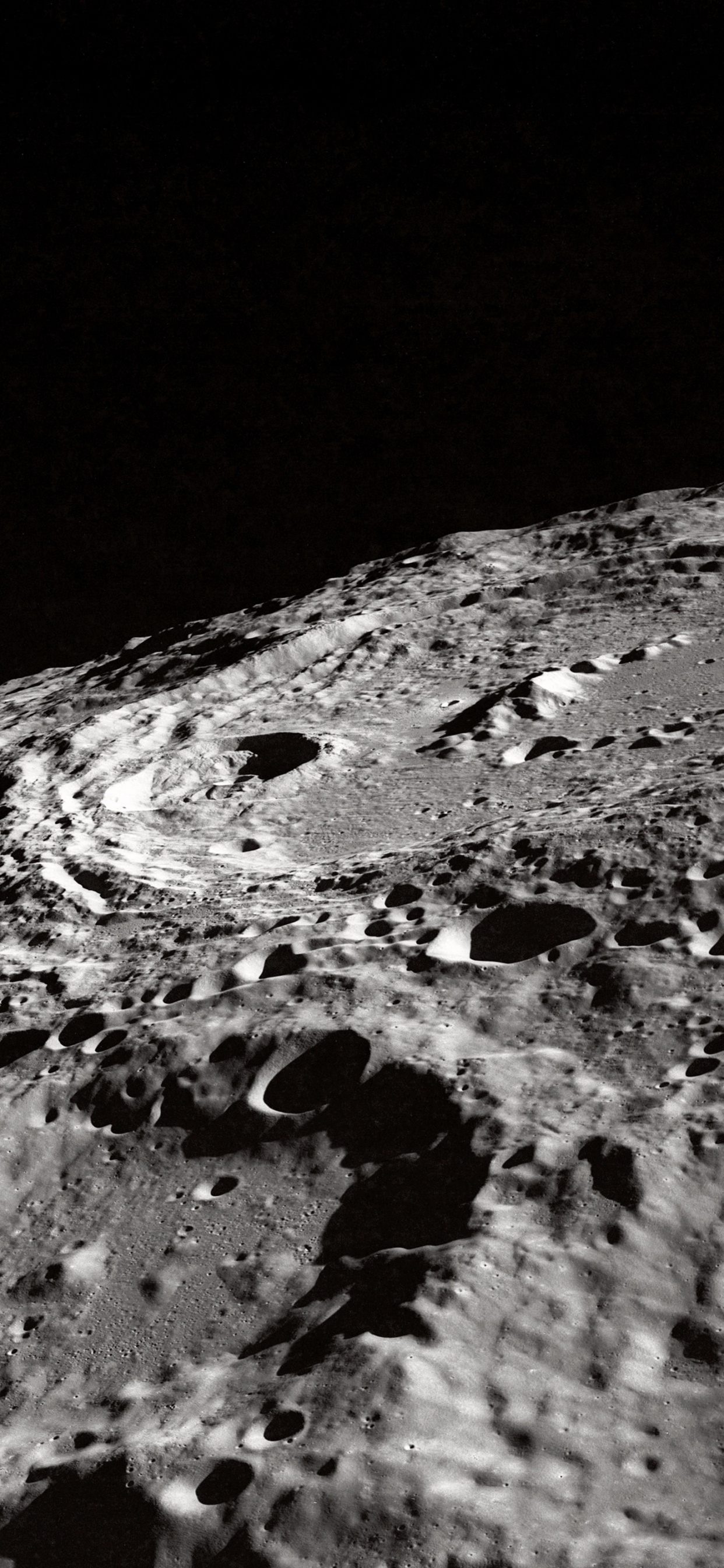 Обои черный и белый, лунная поверхность, вода, Астрономия, астрономический объект для iPhone XS Max, заставка, 1242x2688 картинка
