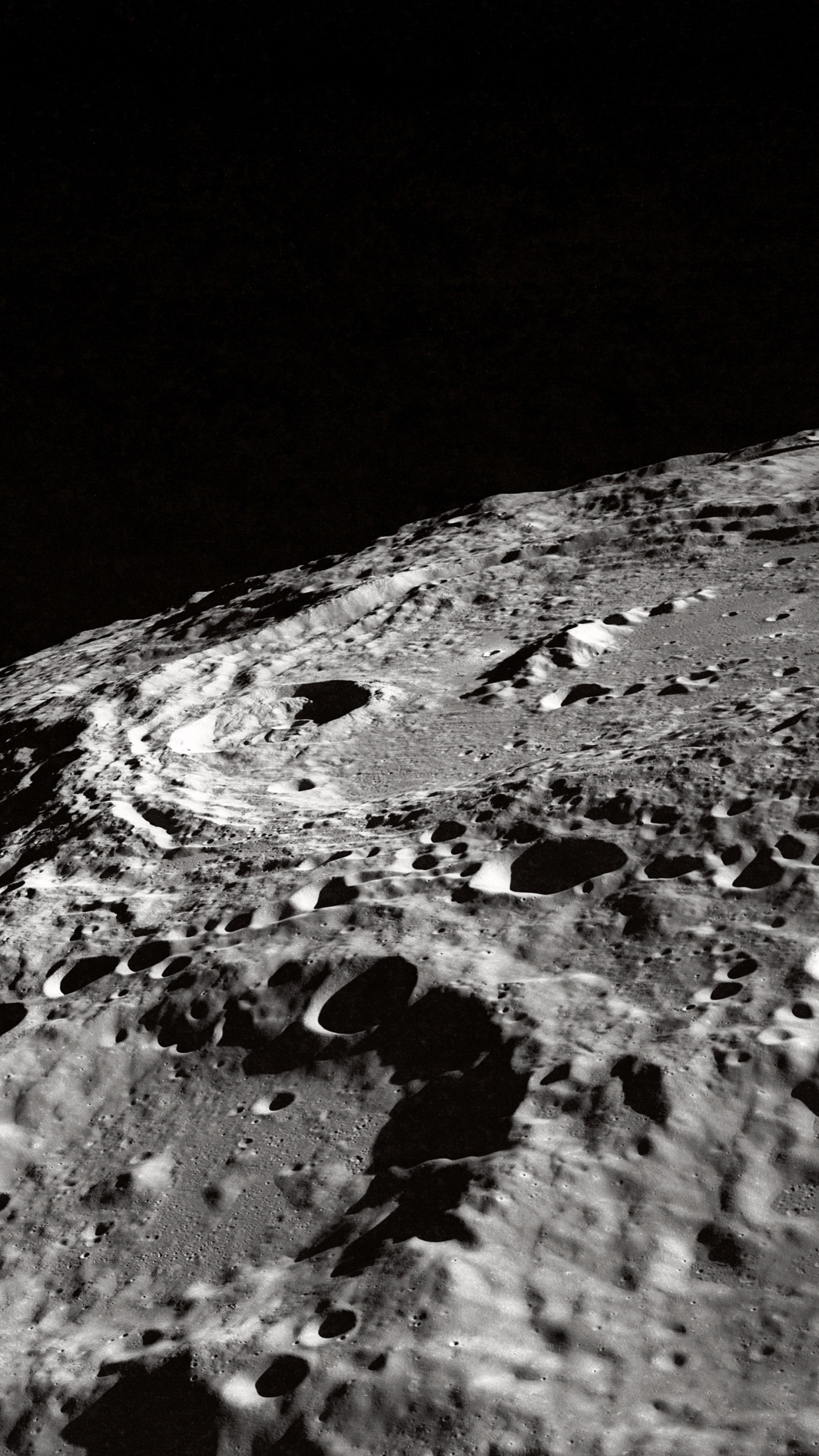 Обои черный и белый, лунная поверхность, вода, Астрономия, астрономический объект для Google Pixel XL, Meizu Pro 7, Nokia 8, HTC U, Huawei P10 Quad HD, заставка, 1440x2560 картинка