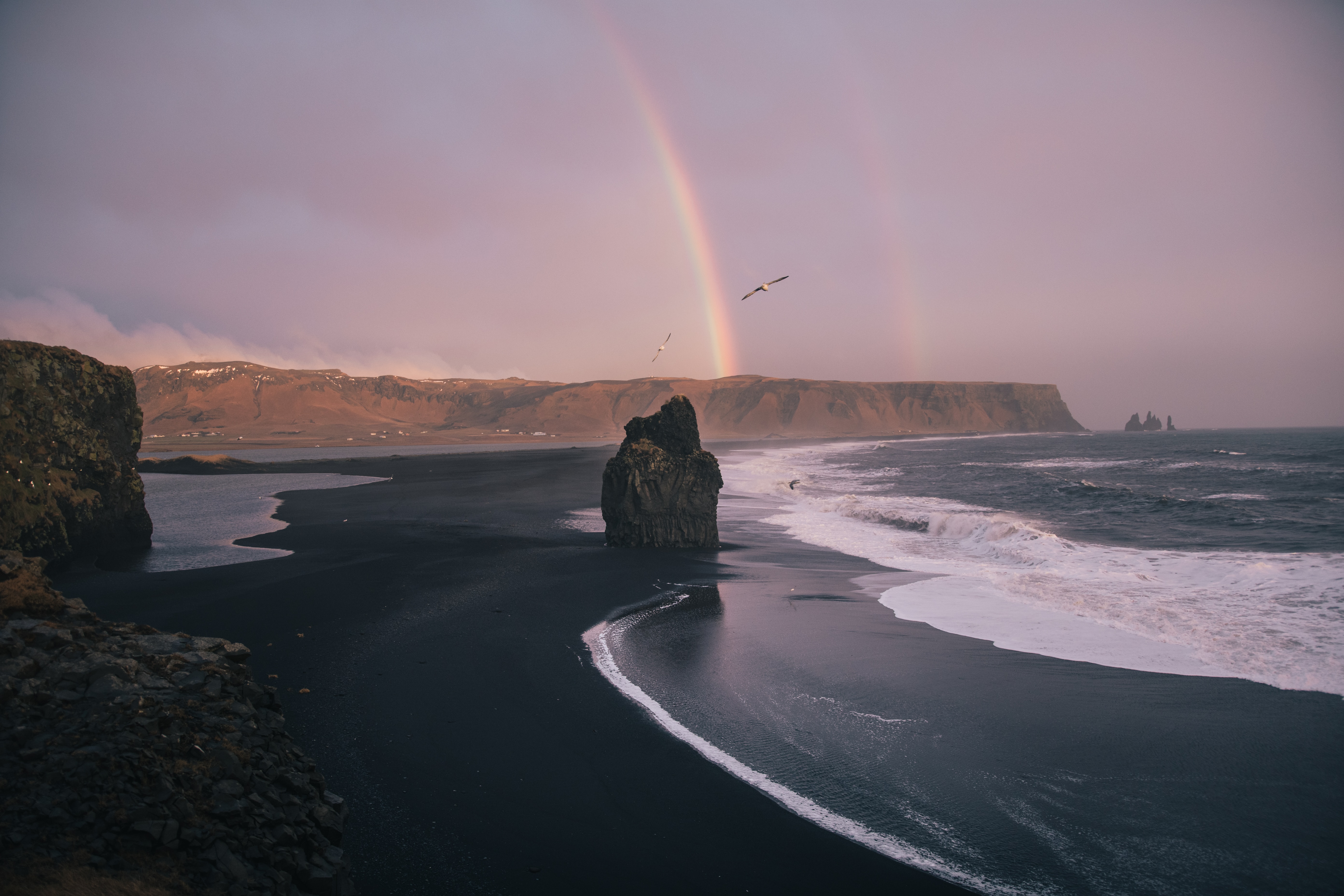 Обои море, ветровая волна, Радуга, рок, побережье, фото, заставка