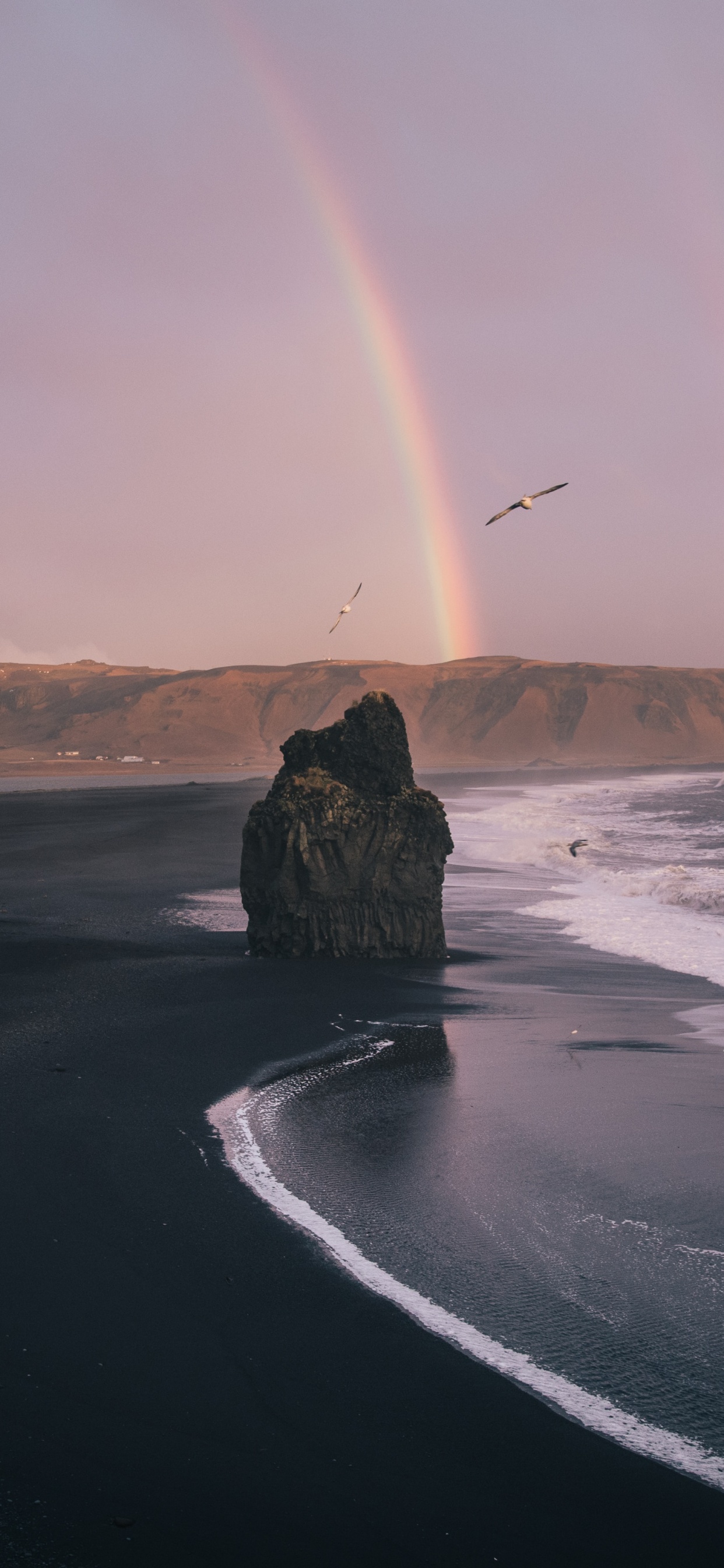 Обои море, ветровая волна, Радуга, рок, побережье для iPhone XS Max, заставка, 1242x2688 картинка