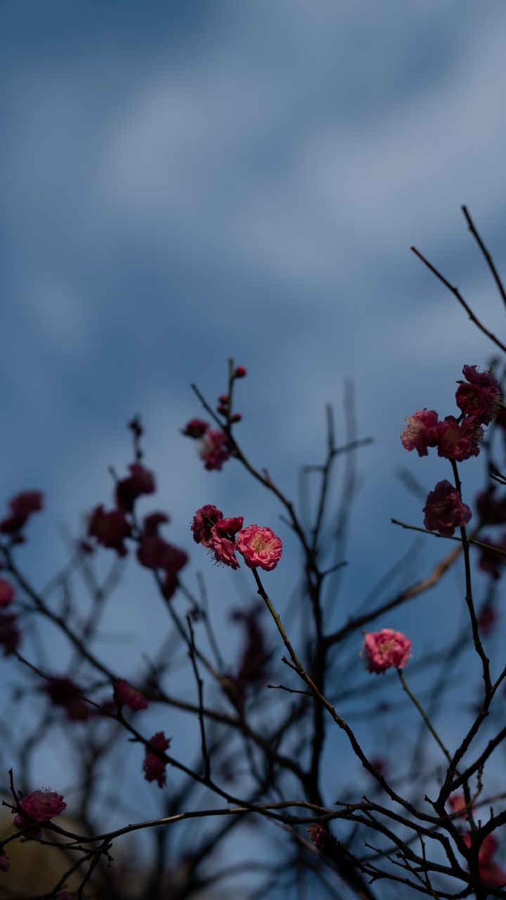Обои цветок, ветвь, синий, дерево, красный цвет для HD Samsung Galaxy S3/J3/J4/J5, Meizu M5, Sony Xperia L1/L2, заставка, 720x1280 картинка