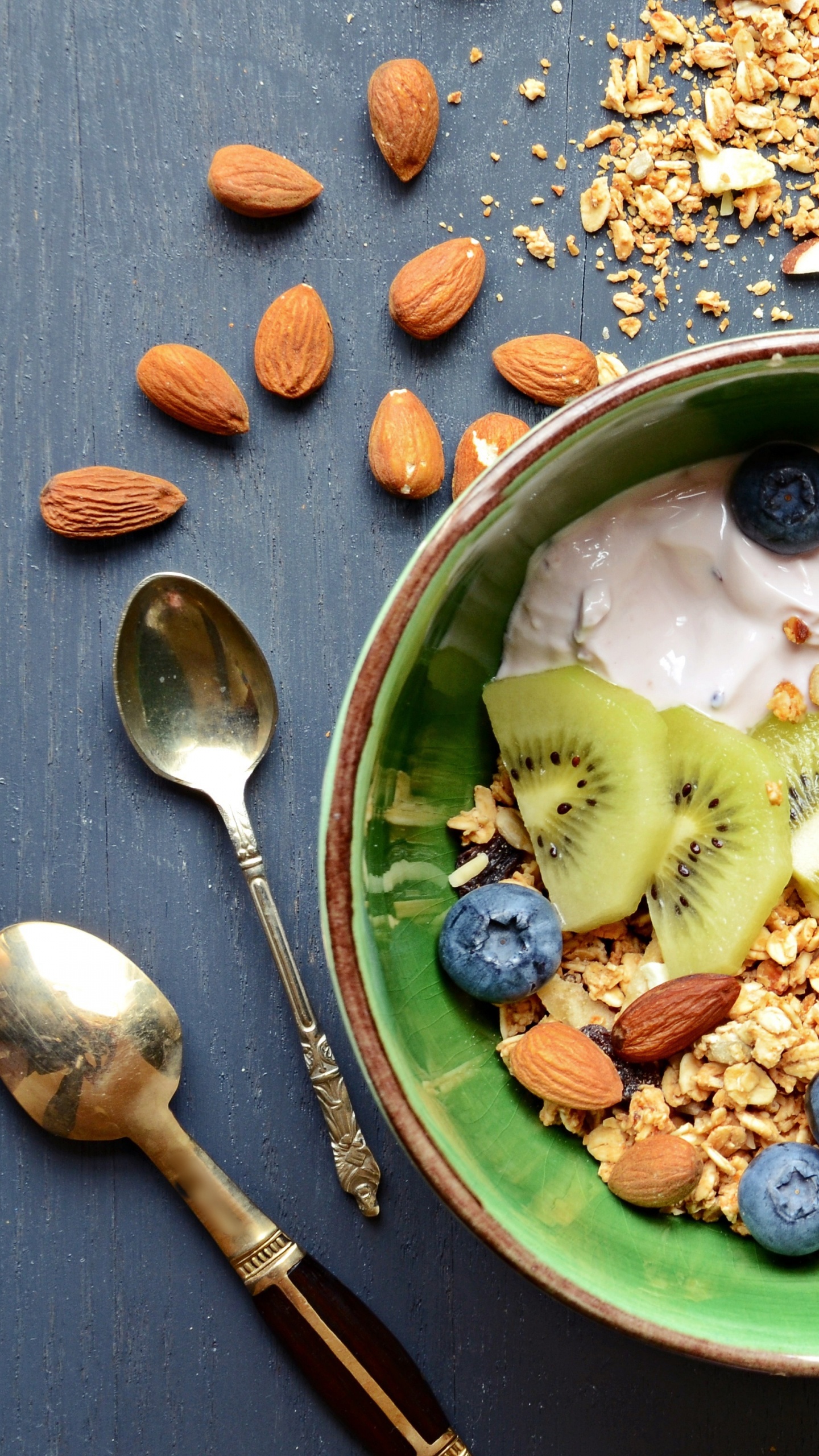 Обои завтрак, мюсли, здоровье, фрукты, еда для Google Pixel XL, Meizu Pro 7, Nokia 8, HTC U, Huawei P10 Quad HD, заставка, 1440x2560 картинка