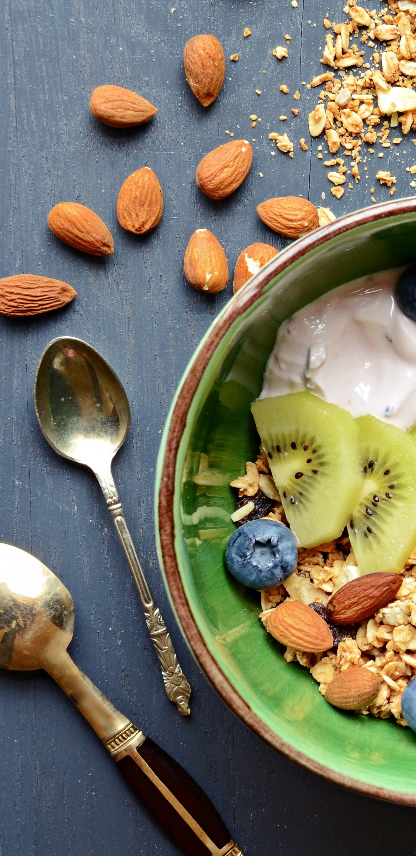 Обои завтрак, мюсли, здоровье, фрукты, еда для Samsung Galaxy S8/S8+/S9/S9+/Note 8/Note 9 QHD, заставка, 1440x2960 картинка