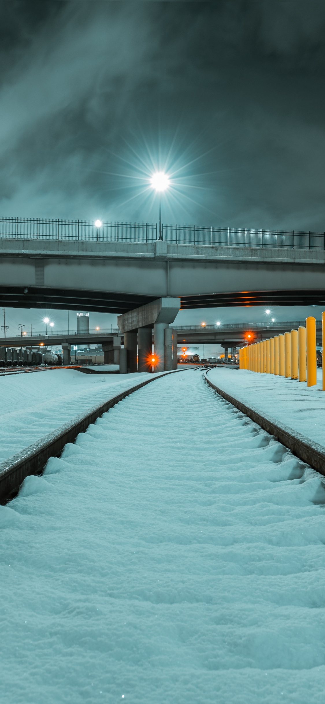 Обои снег, зима, вода, замораживание, ночь для iPhone X / XS, заставка, 1125x2436 картинка