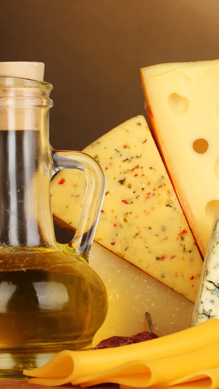 Обои сыр, пища, ингредиент, оливковое масло, розничная продажа для HD Samsung Galaxy S3/J3/J4/J5, Meizu M5, Sony Xperia L1/L2, заставка, 720x1280 картинка