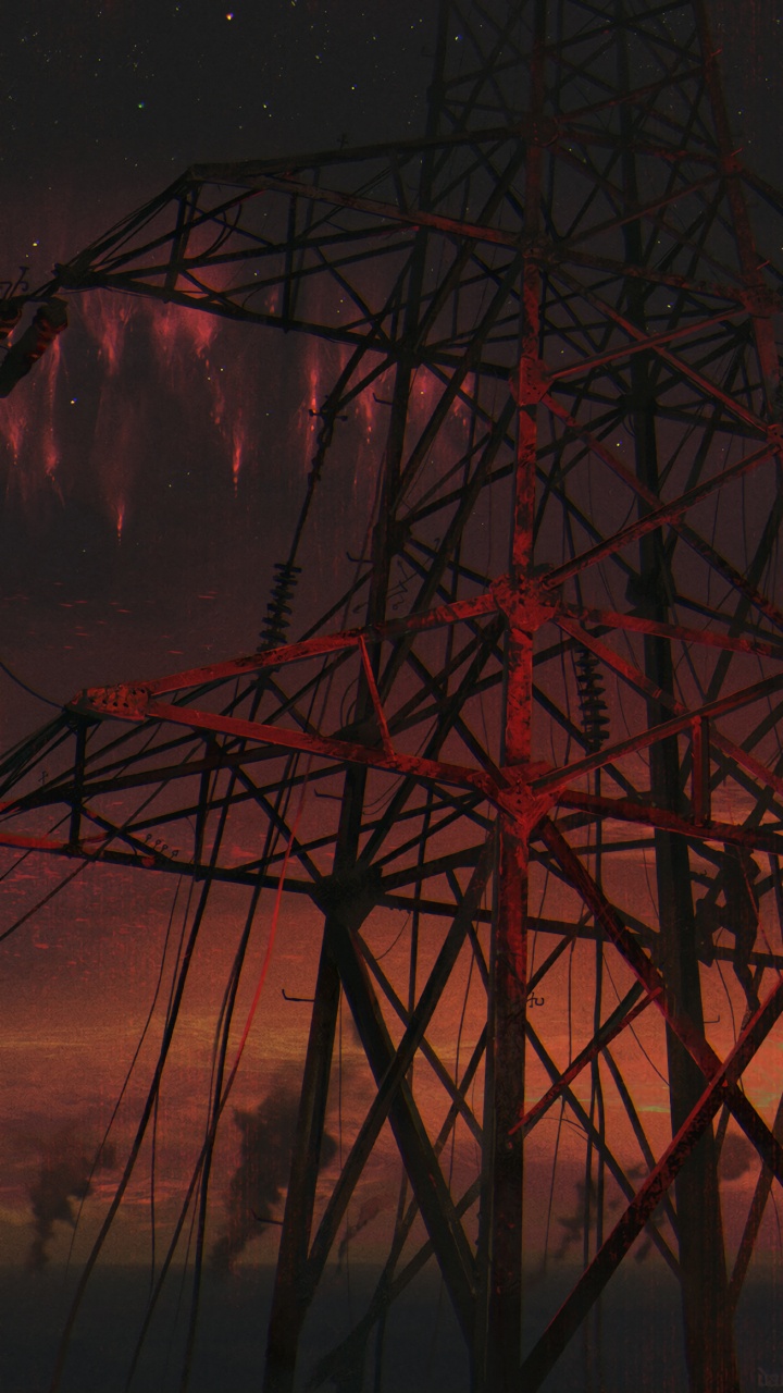 Обои арт, красный цвет, электричество, воздушной линии электропередач, электроснабжение для HD Samsung Galaxy S3/J3/J4/J5, Meizu M5, Sony Xperia L1/L2, заставка, 720x1280 картинка