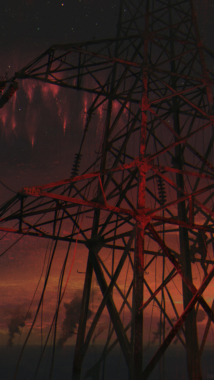 Обои арт, красный цвет, электричество, воздушной линии электропередач, электроснабжение для iPhone 6, 6S, 7, 8, заставка, 750x1334 картинка