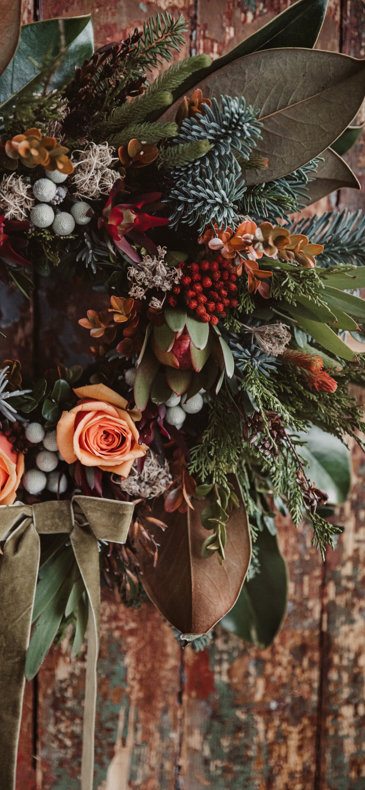 Обои цветочный дизайн, венок, Рождественские украшения, цветок, растение для iPhone XS Max, заставка, 1242x2688 картинка