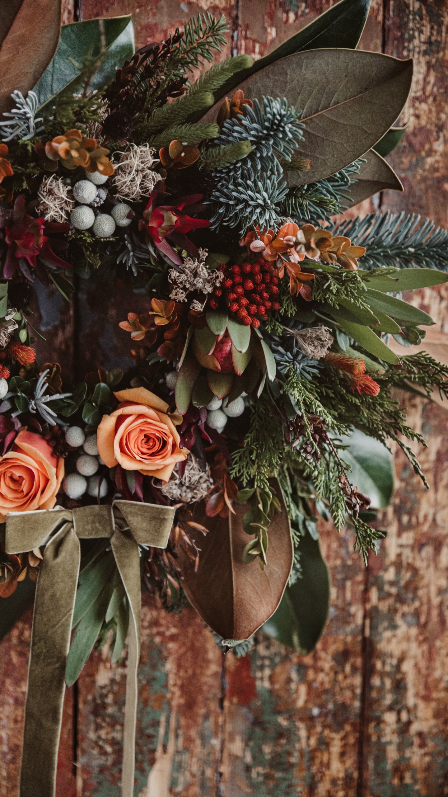 Обои цветочный дизайн, венок, Рождественские украшения, цветок, растение для Google Pixel XL, Meizu Pro 7, Nokia 8, HTC U, Huawei P10 Quad HD, заставка, 1440x2560 картинка