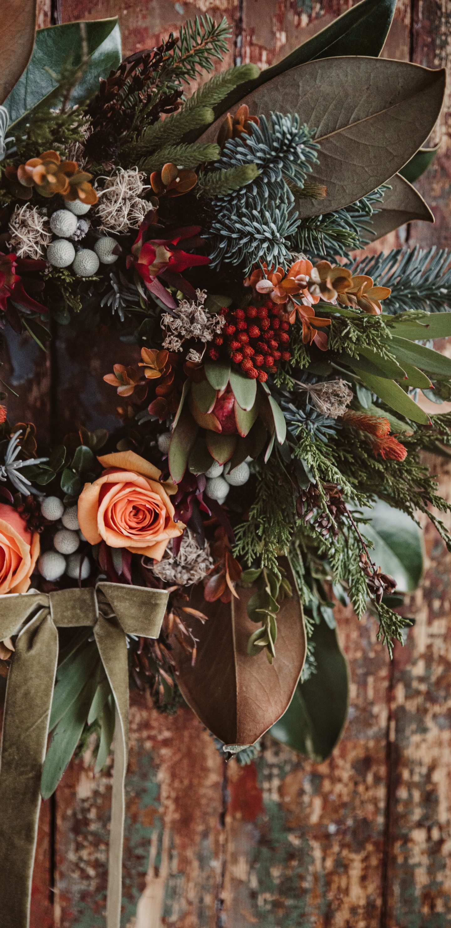 Обои цветочный дизайн, венок, Рождественские украшения, цветок, растение для Samsung Galaxy S8/S8+/S9/S9+/Note 8/Note 9 QHD, заставка, 1440x2960 картинка