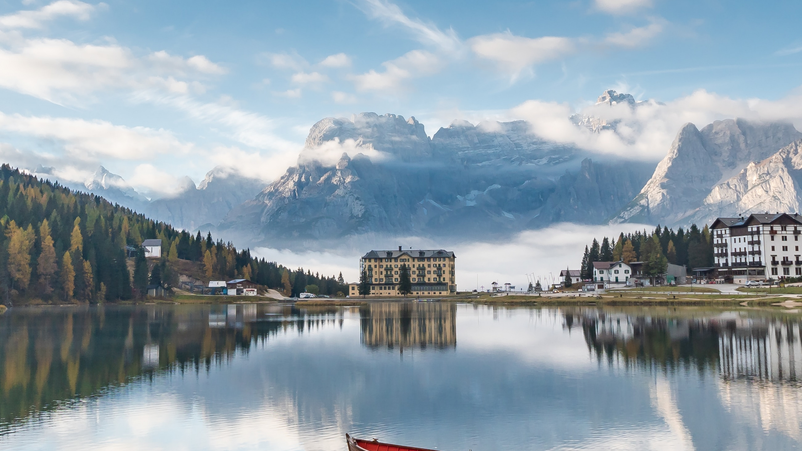 Обои 2560x1440 водоем, озерный край, отражение, облако, закат, WQHD, QHD, 16:9 картинка