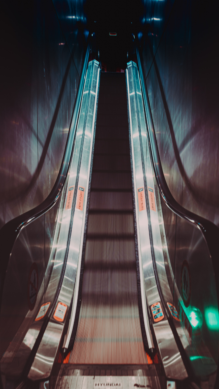 Обои Сеул, эскалатор, свет, ночь, архитектура для iPhone 6, 6S, 7, 8, заставка, 750x1334 картинка