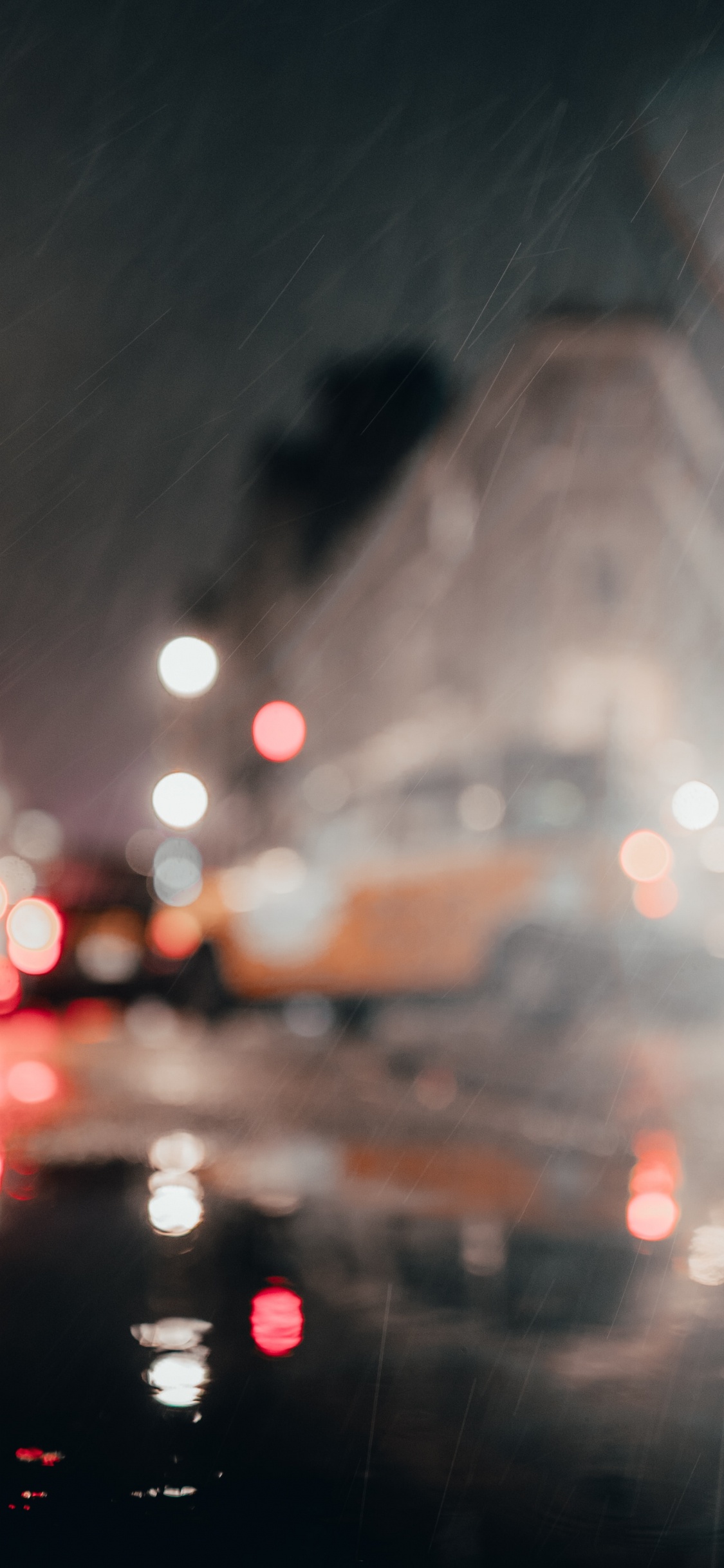 Обои красный цвет, свет, дождь, город, облако для iPhone X / XS, заставка, 1125x2436 картинка
