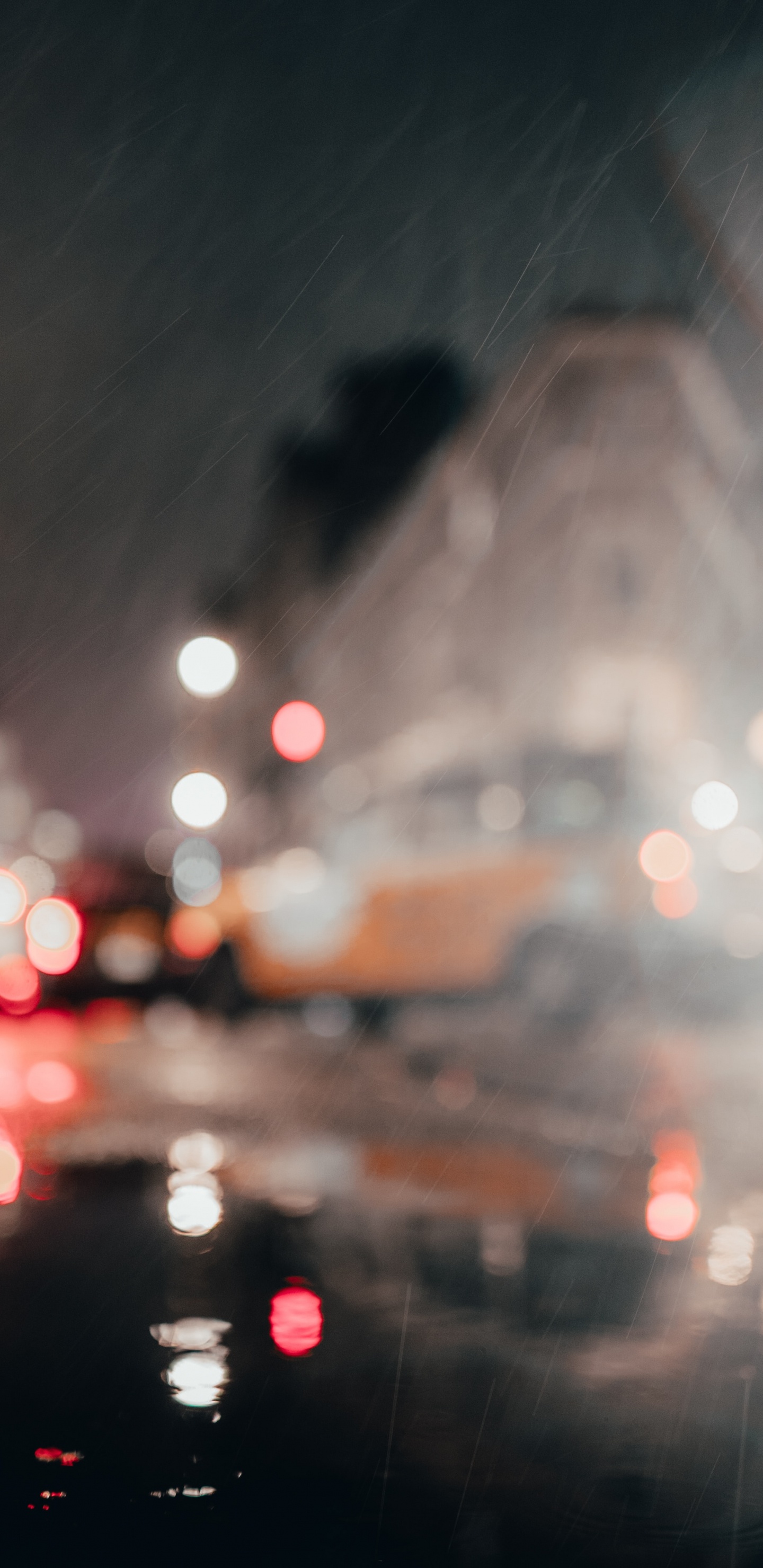 Обои красный цвет, свет, дождь, город, облако для Samsung Galaxy S8/S8+/S9/S9+/Note 8/Note 9 QHD, заставка, 1440x2960 картинка