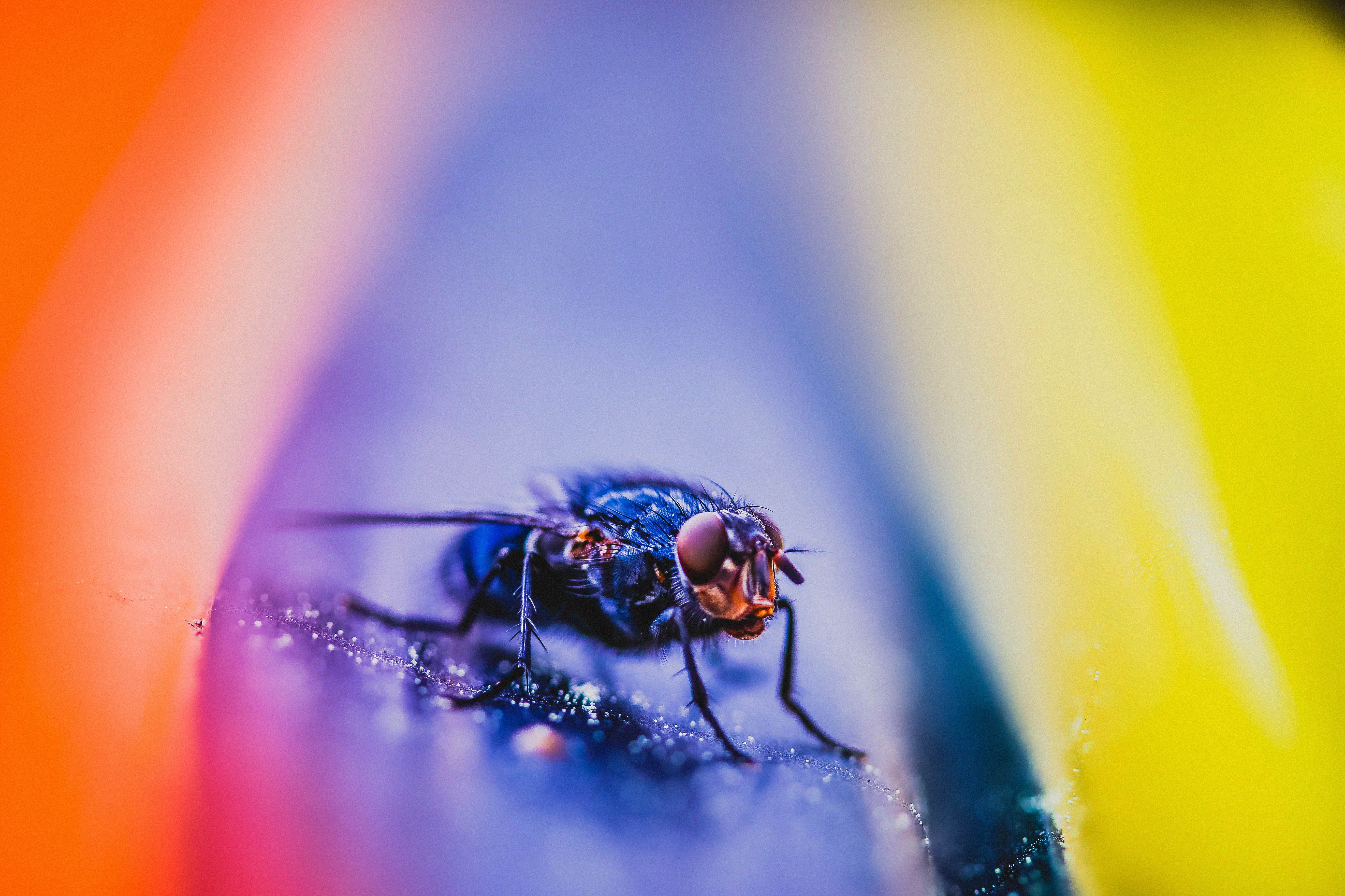 Обои красный цвет, паразит, синий, насекомое, глаз, фото, заставка