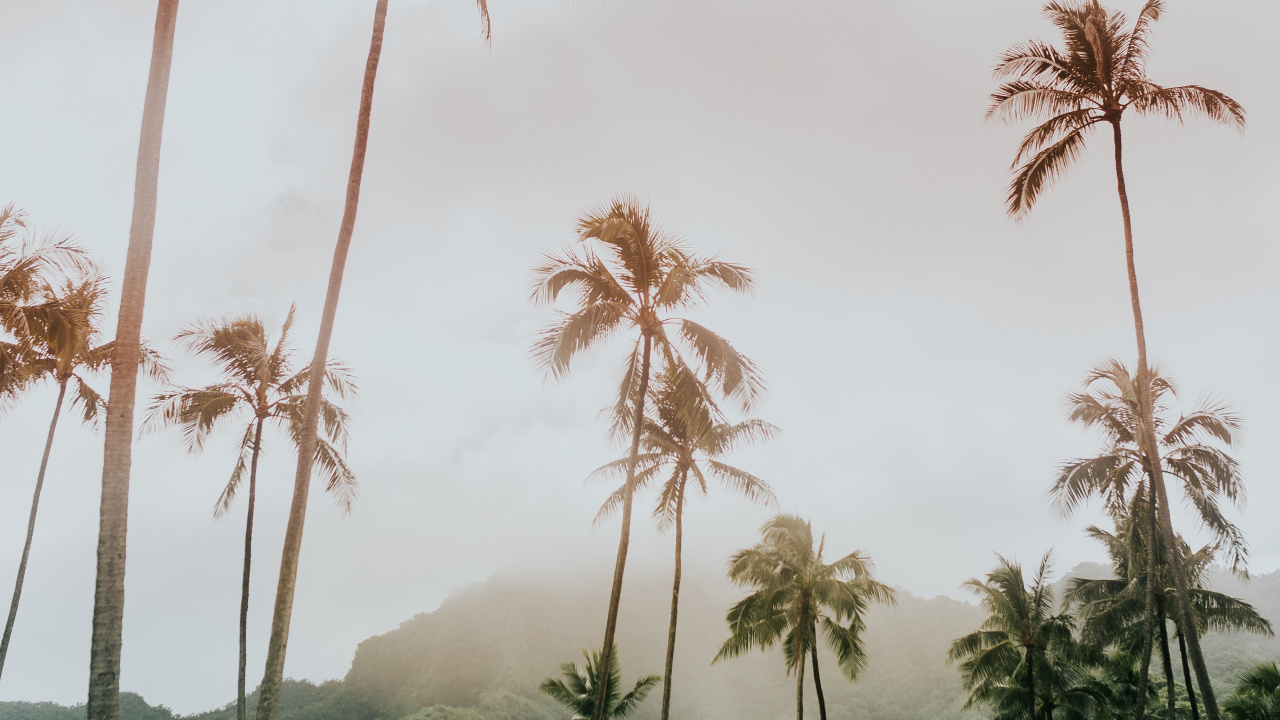 Обои 1280x720 Низкий угол выстрел, Пальмоцветные, растительность, дерево, древесные растения, HD, HDV, 720p, 16:9 картинка