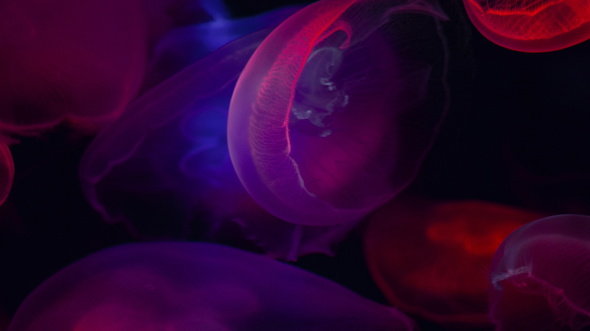 Обои 1920x1080 пурпур, цвет, вода, Литий-Фиолетовый, Медуза, Full HD, HDTV, 1080p 16:9 картинка