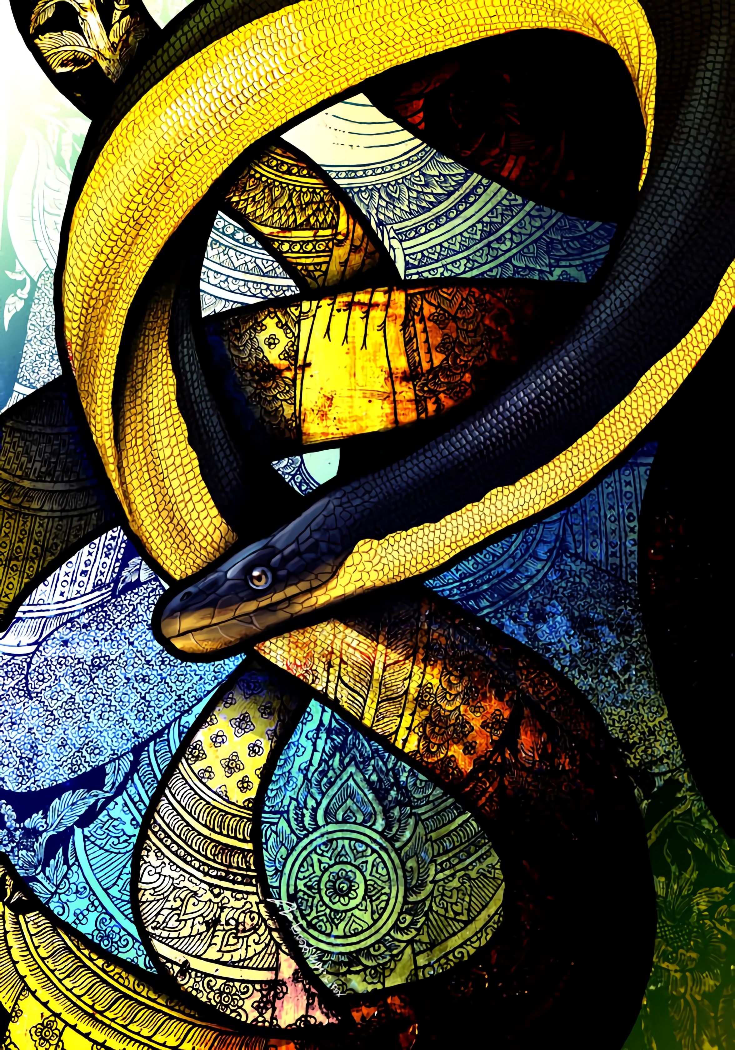 Обои Желтобрюхий морской змеи, пресмыкающееся, стекло, окно, витраж, фото, заставка