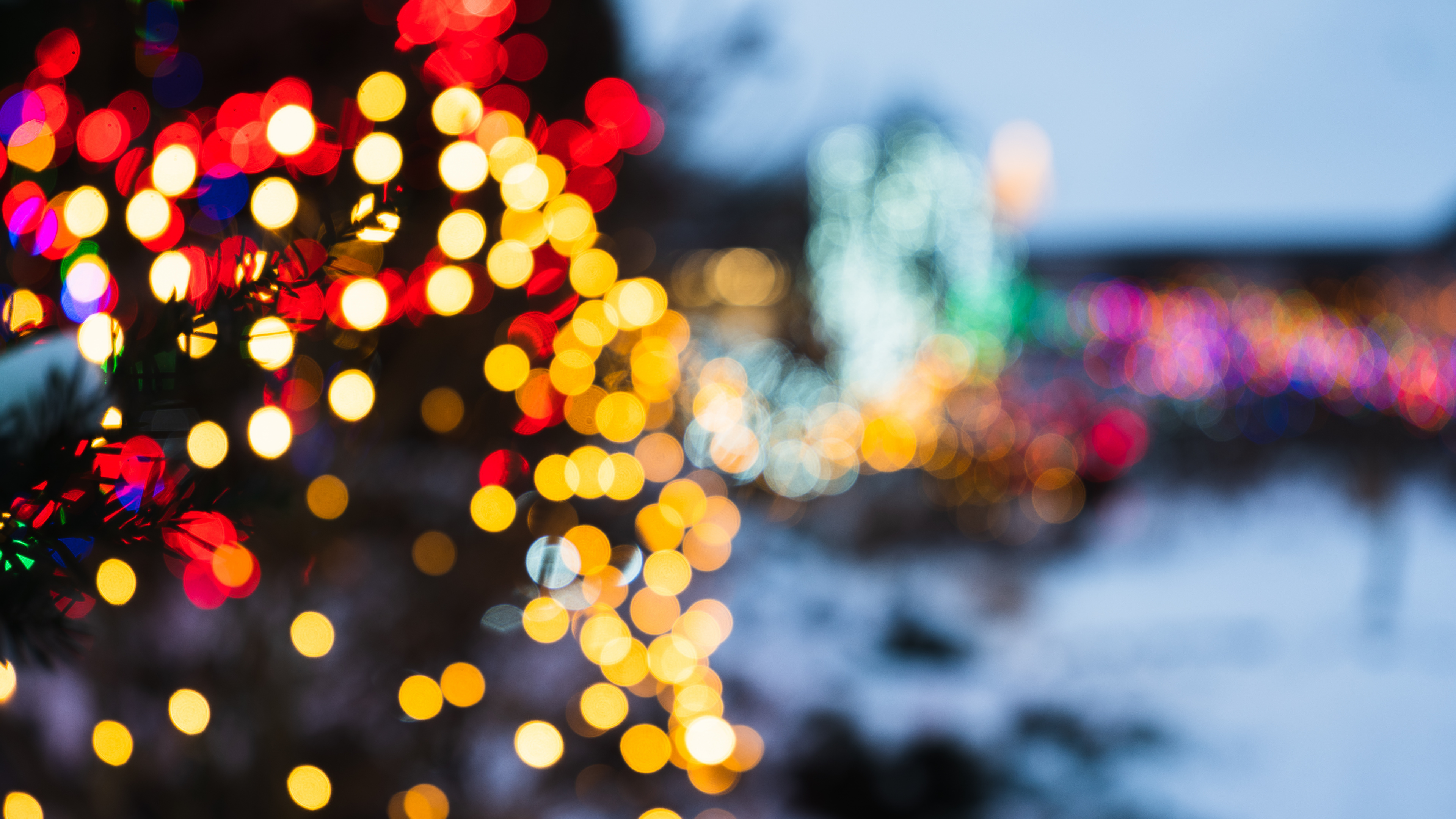 Обои 3840x2160 Рождественский день, свет, освещение, отражение, вода, 4K Ultra HD картинка
