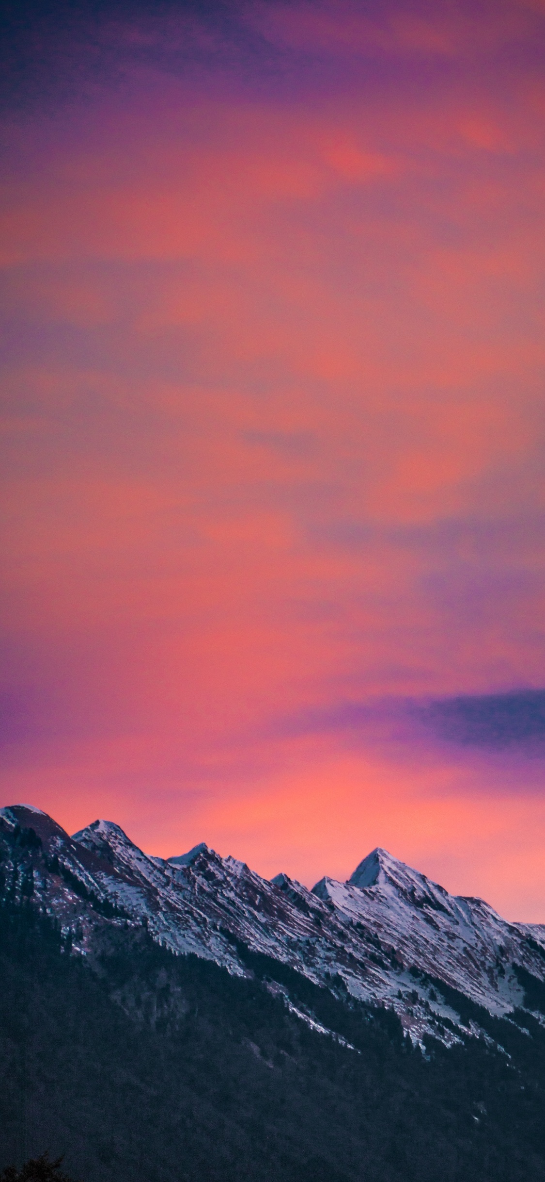 Обои послесвечение, розовый, горный рельеф, закат, сумрак для iPhone X / XS, заставка, 1125x2436 картинка