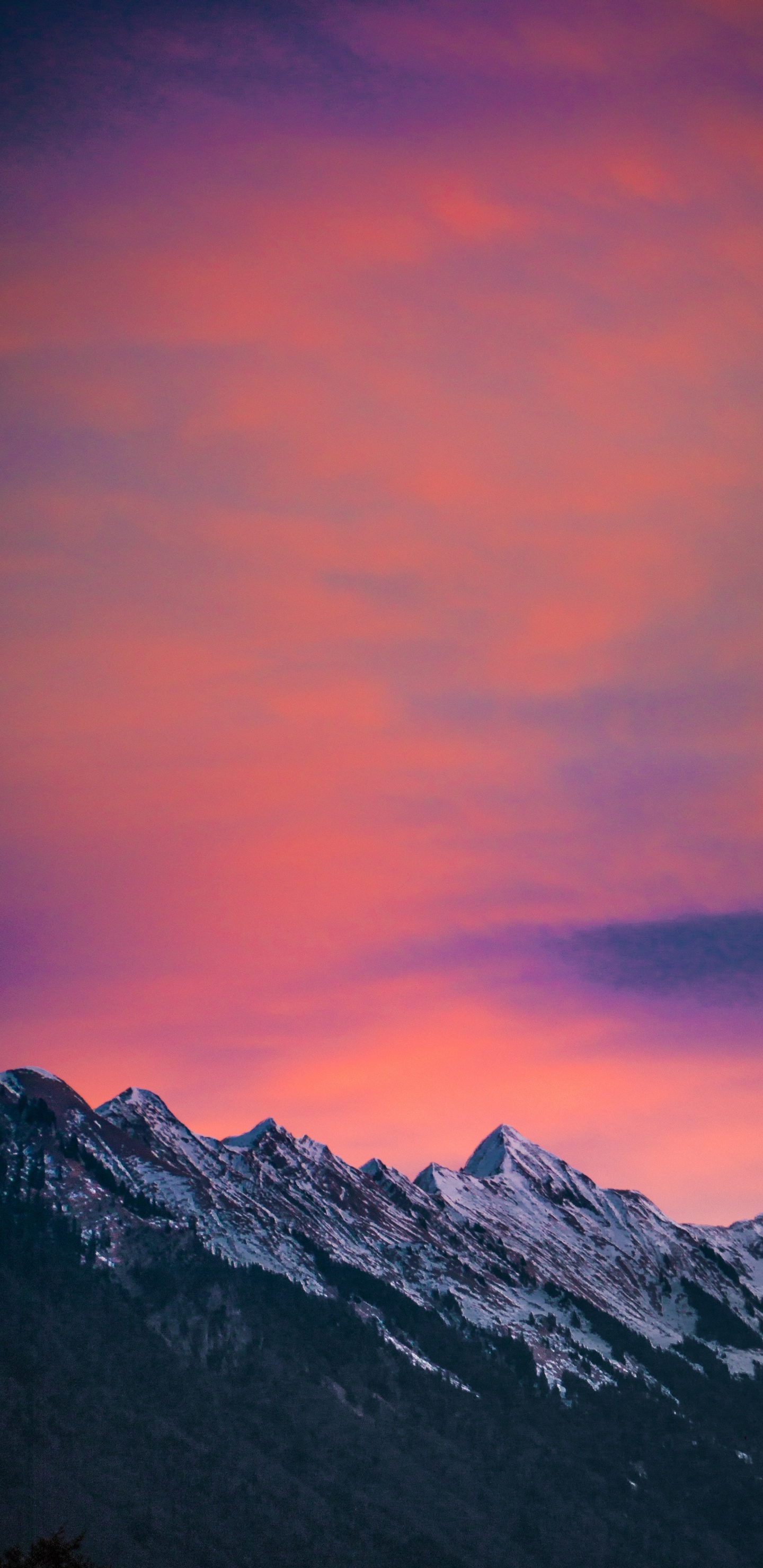 Обои послесвечение, розовый, горный рельеф, закат, сумрак для Samsung Galaxy S8/S8+/S9/S9+/Note 8/Note 9 QHD, заставка, 1440x2960 картинка