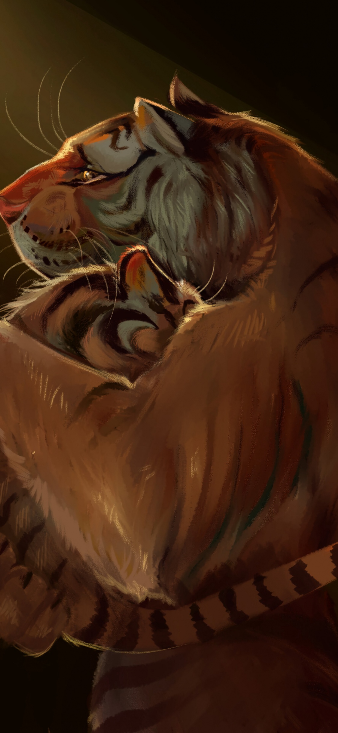 Обои тигр, большая кошка, иллюстрация, творчество, арт для iPhone X / XS, заставка, 1125x2436 картинка