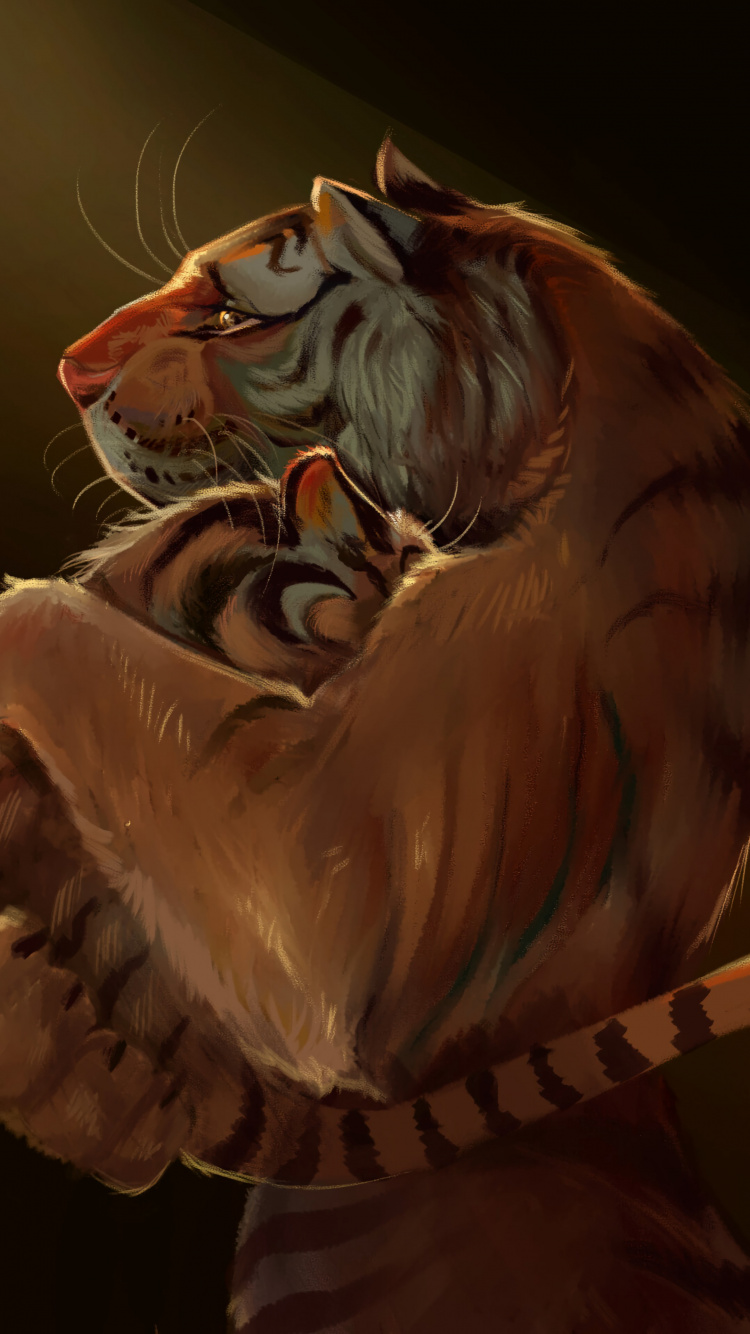Обои тигр, большая кошка, иллюстрация, творчество, арт для iPhone 6, 6S, 7, 8, заставка, 750x1334 картинка