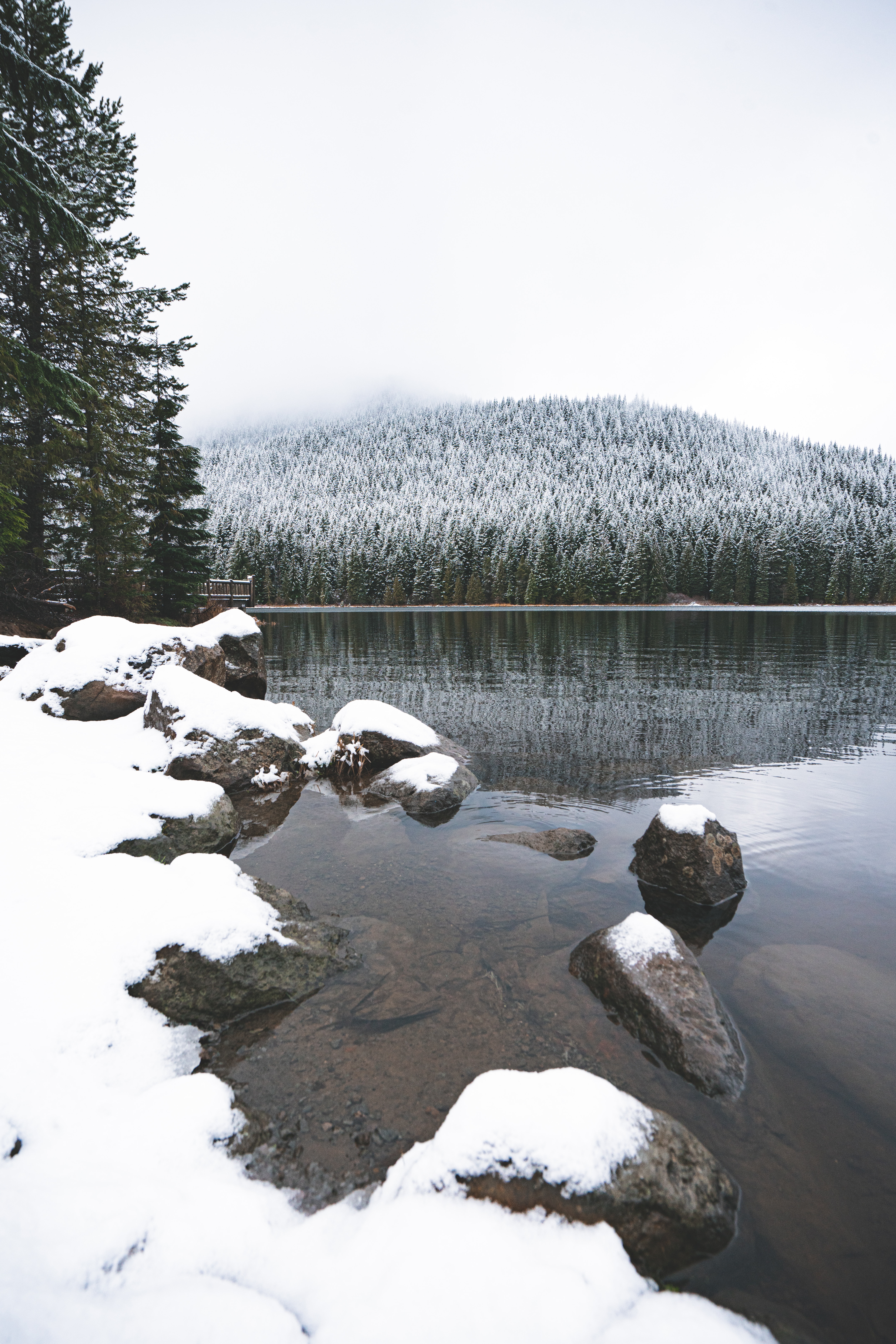 Обои дерево, гора, снег, зима, озеро, фото, заставка