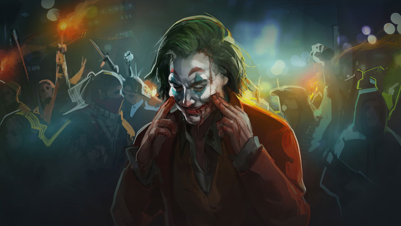 Обои 1280x720 Джокер, космос, арт, Цифровой композитинг, суперзлодей, HD, HDV, 720p, 16:9 картинка