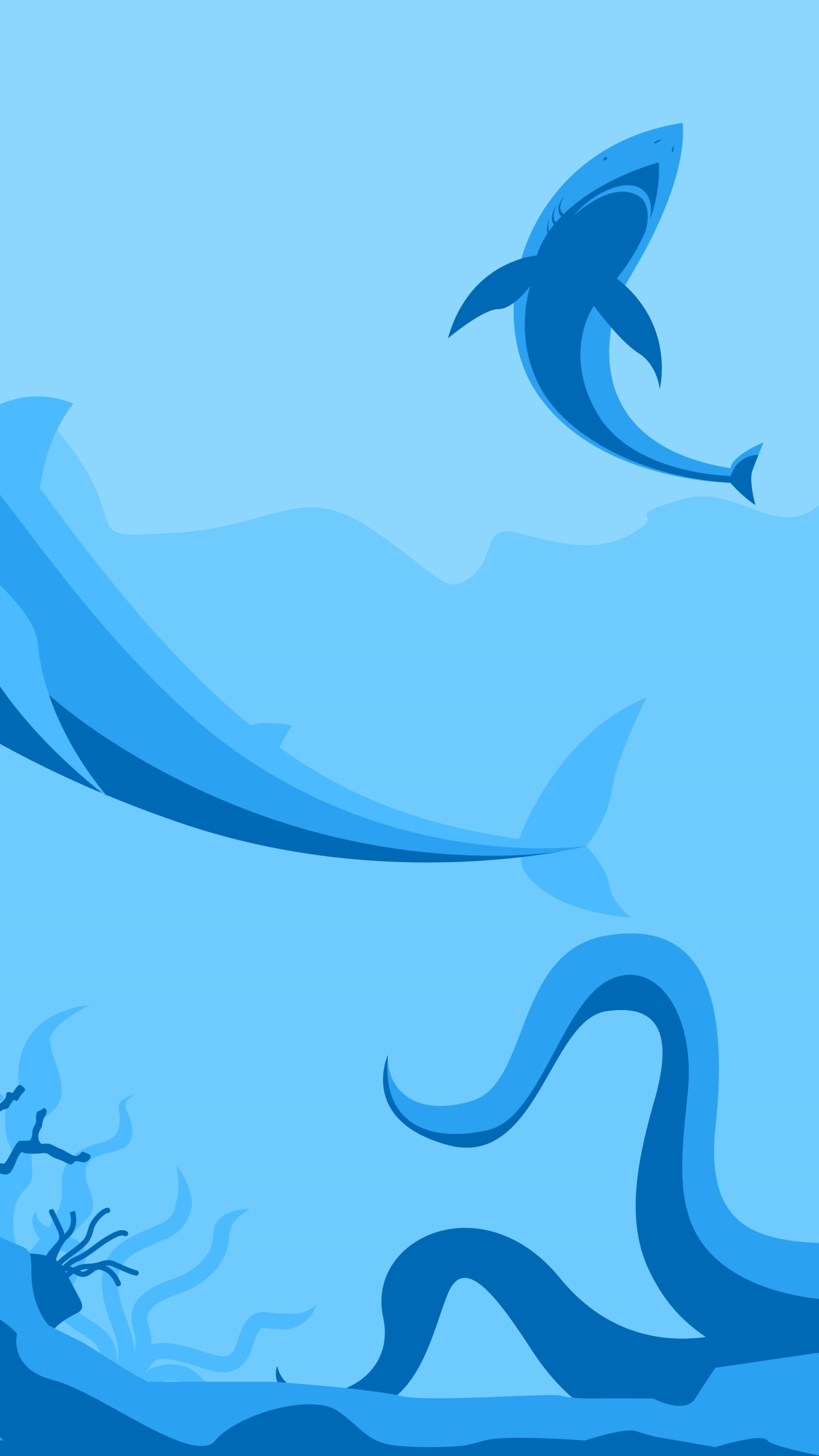 Обои осьминог, акула, океан, минимализм, синий для Google Pixel XL, Meizu Pro 7, Nokia 8, HTC U, Huawei P10 Quad HD, заставка, 1440x2560 картинка