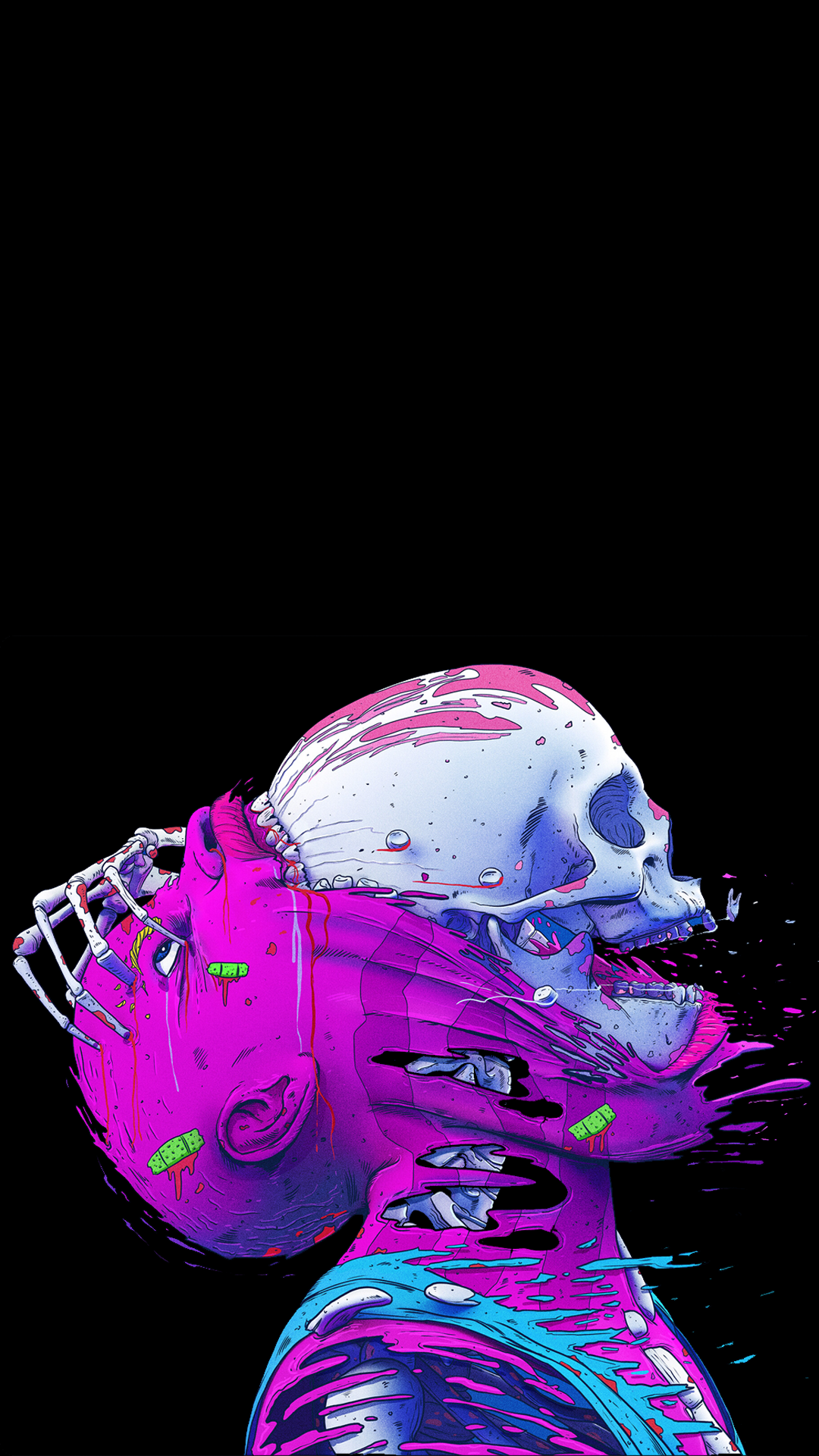 Обои скелет, череп, амолед, галактика череп, пурпурный цвет, фото, заставка